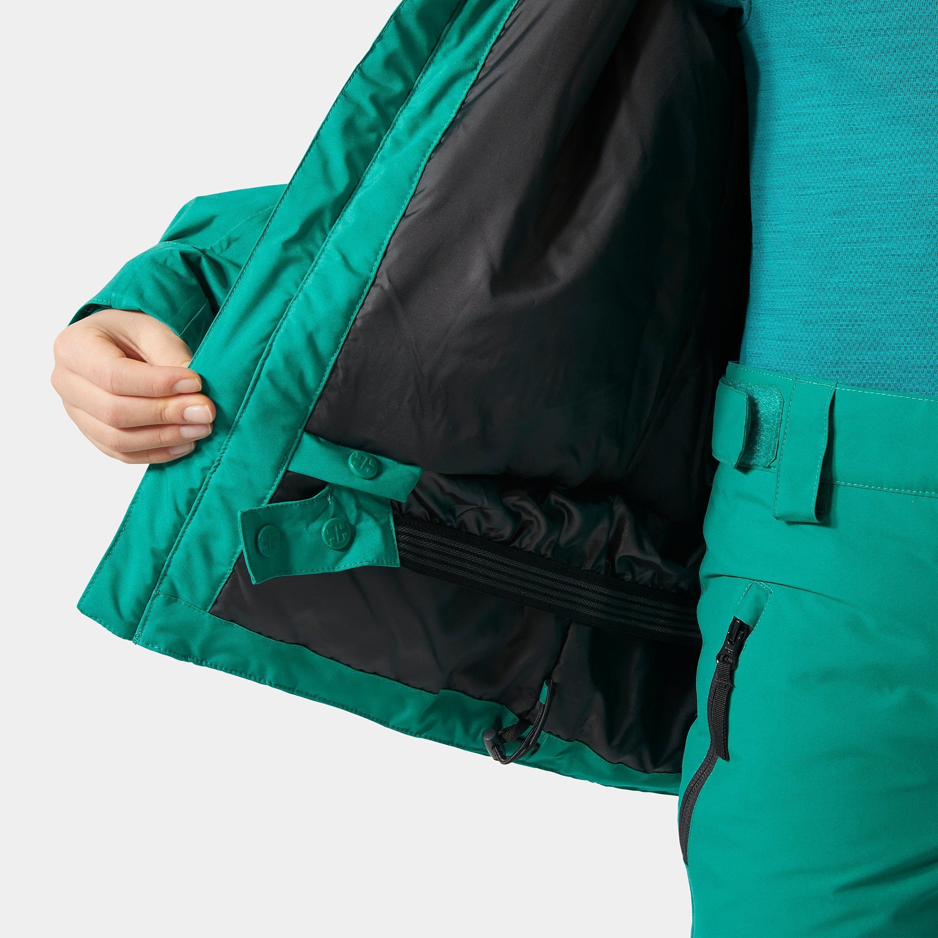This juniors’ ski jacket delivers the comfort, weatherproofing and warmth needed to take on the slopes. With our trusted HELLY TECH® Performance technology, the Quest is waterproof/breathable, and wind resistant. The exterior sheds light precipitation, and PrimaLoft® BLACK Eco insulation keeps young trailblazers warm. An articulated cut delivers the freedom of movement for excelling on the slopes. Additional details include neon and reflective for visibility, a ski pass pocket, a detachable hood, a drawcord hem, and a powder skirt. This jacket is made with recycled content. See composition for details.