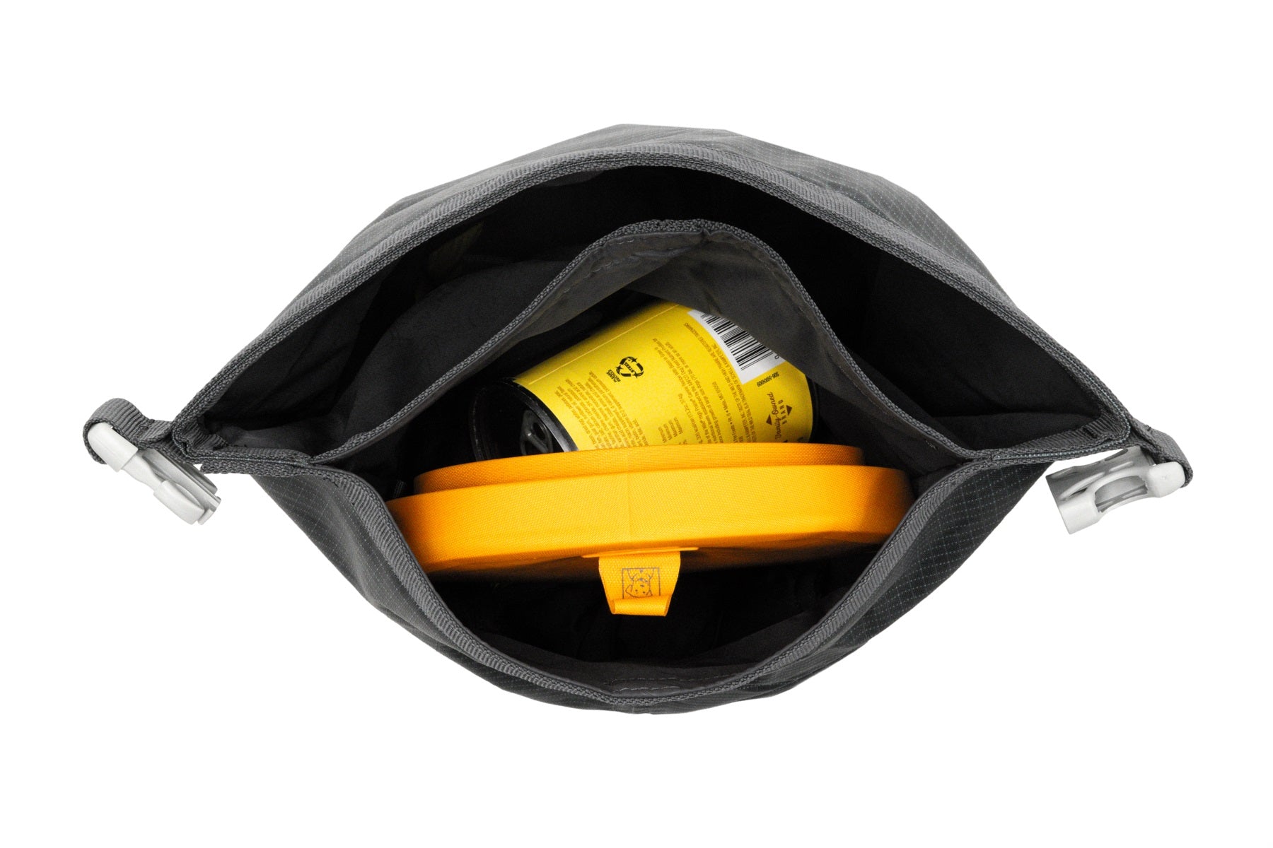 - Separate internal compartment stashes collapsible bowls and other food items