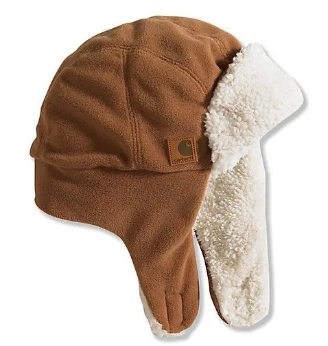 Hunting season or morning chores, this sherpa-lined hat for little kids is designed with cold weather in mind. It has a lightweight polyester exterior and a plush fleece lining. Extended chin straps secure it in place and add warmth.