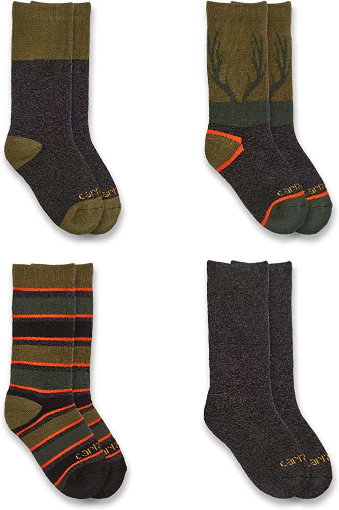Dry feet so you can work and play outside longer. Carhartt Kids’ Heavyweight Crew Socks in 4-Pack feature a soft, durable blend that moves sweat away from the skin to keep feet dry and comfortable. Cushioning on the heels, arches, and toes adds protection and comfort. Available in 4-Pack in two kids’ sizes: Medium (US Kids' shoe size 12T-2.5) and Large (US Kids' shoe size 3-6).