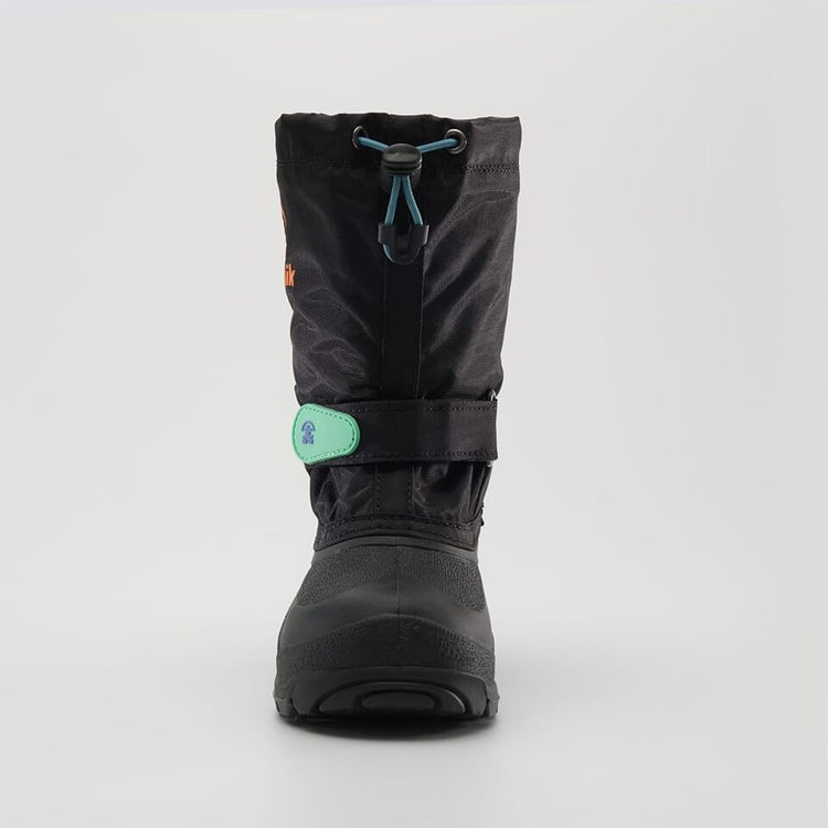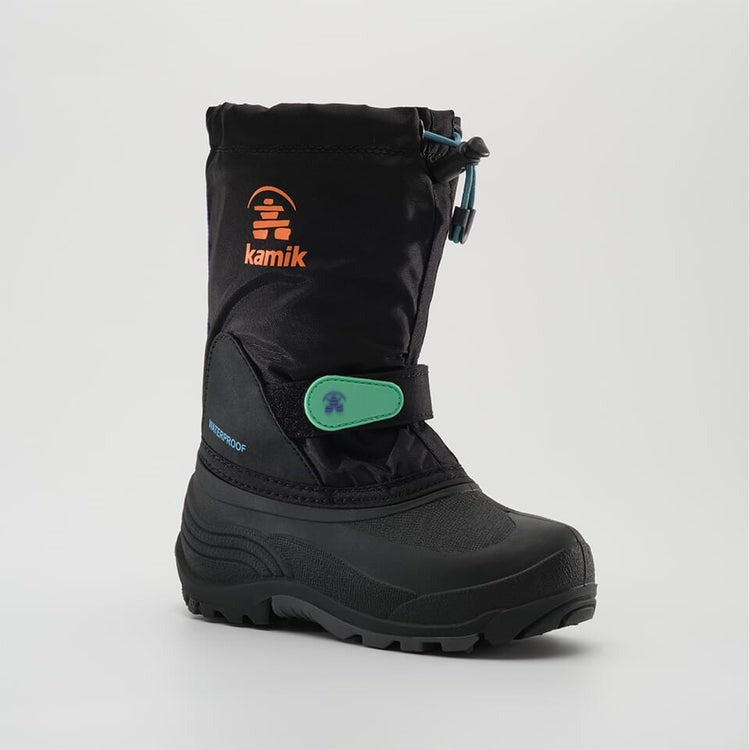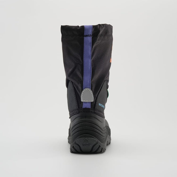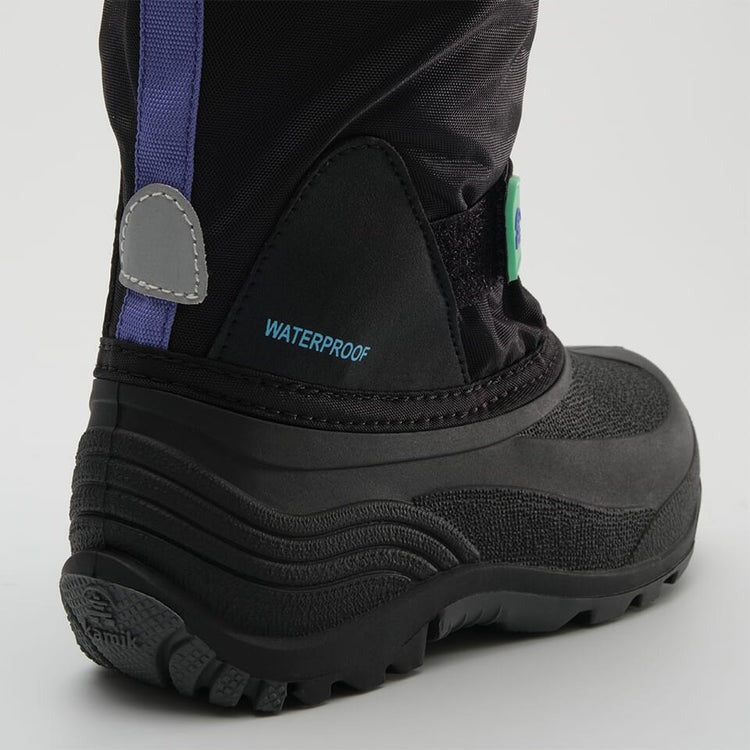 Warm feet, big smiles: they'll be ready for every winter adventure in our Waterbug 5 boots. The waterproof nylon upper and moisture-wicking liner mean no more soggy socks—just happy, dry feet all day long. With an adjustable snow collar, easy-grab lace lock, and a comfy hook-and-loop strap, these boots are a breeze to put on and stay snug through every snowball fight. Plus, the reflective details and flexible, grippy outsole keep your kid safe and steady while they explore the outdoors; rain, snow, or shine!