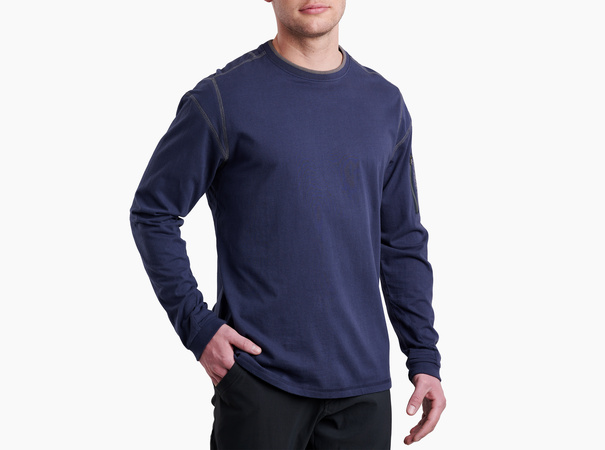 No need to be Special Ops to appreciate the durability and comfort of 100% organic cotton. The KOMMANDO™ delivers easy-care, year-round performance with casual, everyday style. This mid-weight crew neck features our signature thumb loops and a convenient stash pocket on left bicep.