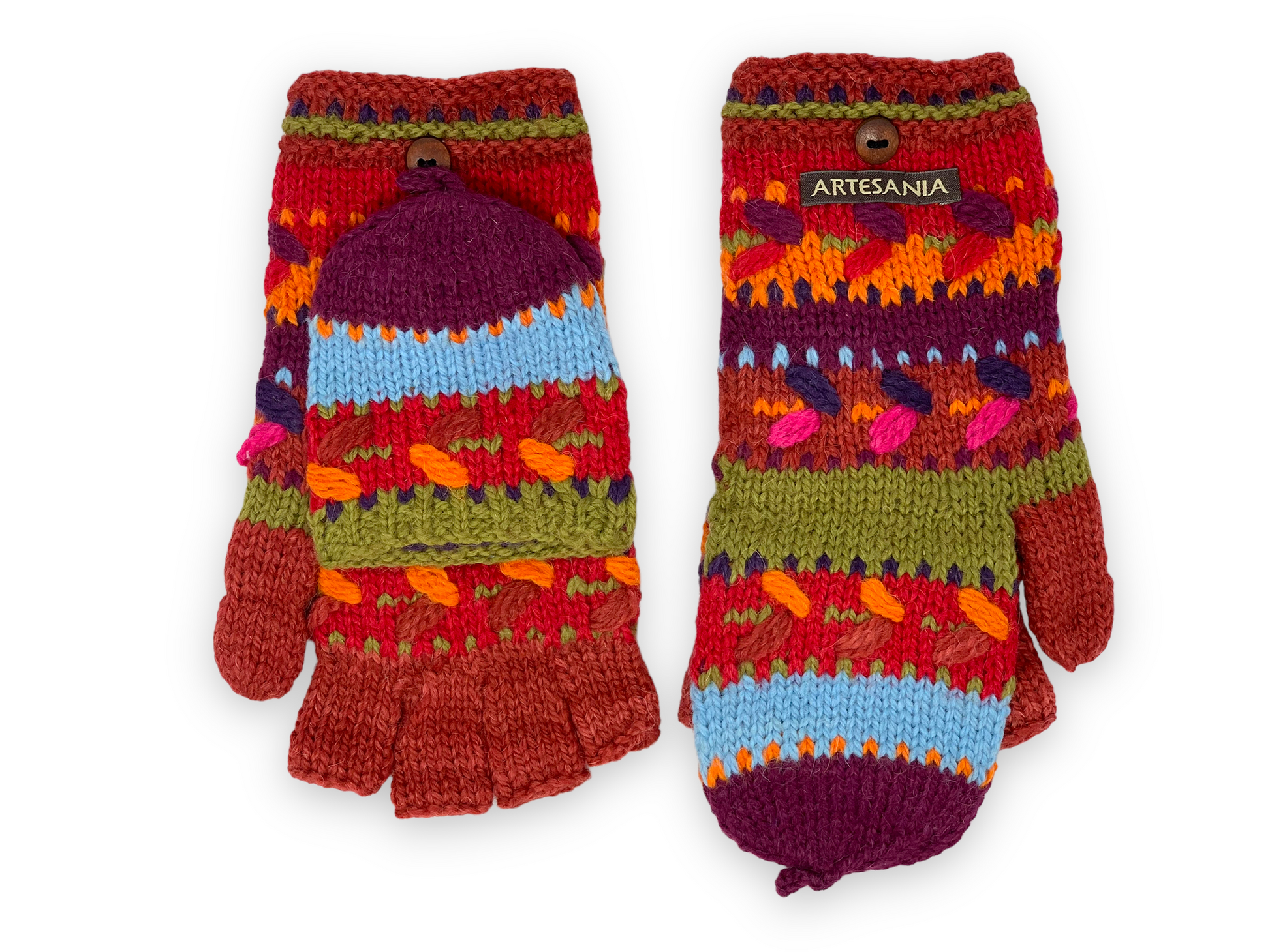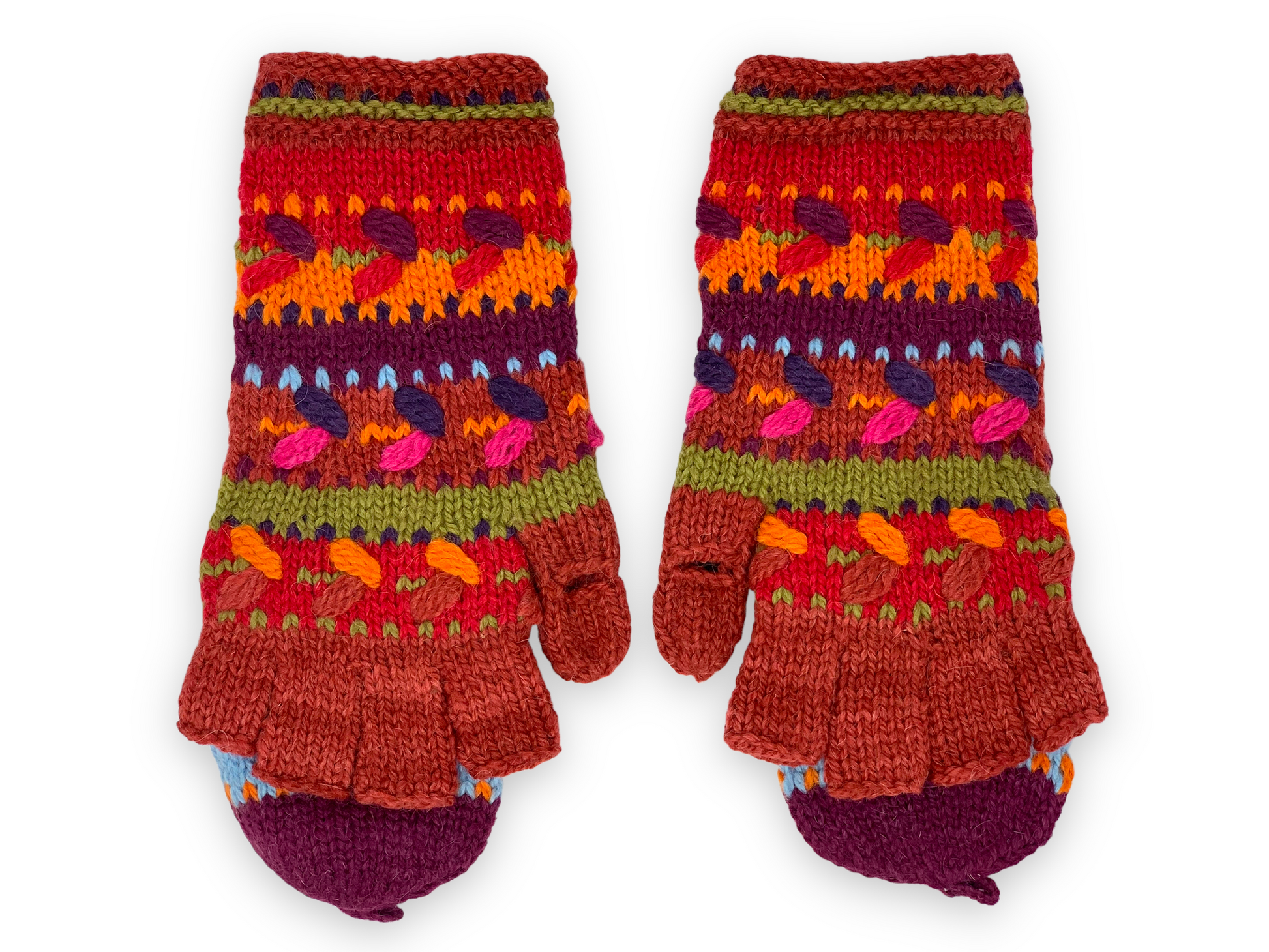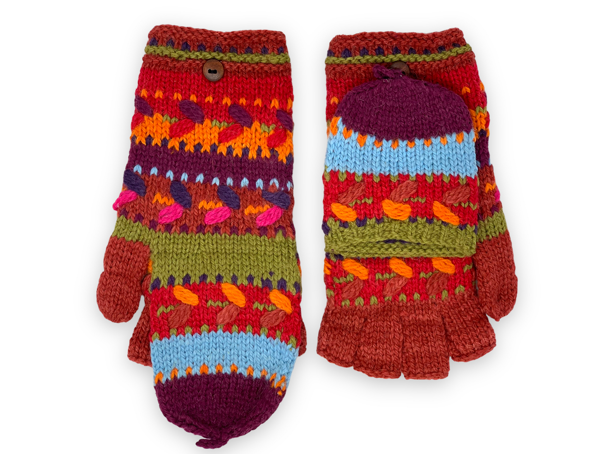 - Convertible mittens switch to fingerless gloves in seconds
