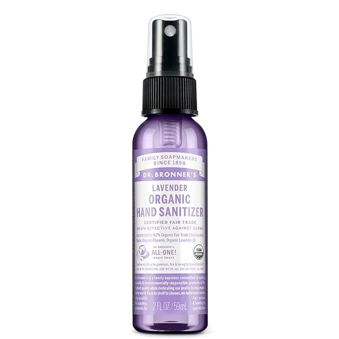 Ingredients: Organic Fair Trade Ethyl Alcohol (62%)*, Water, Organic Glycerin**, Organic Lavender Oil