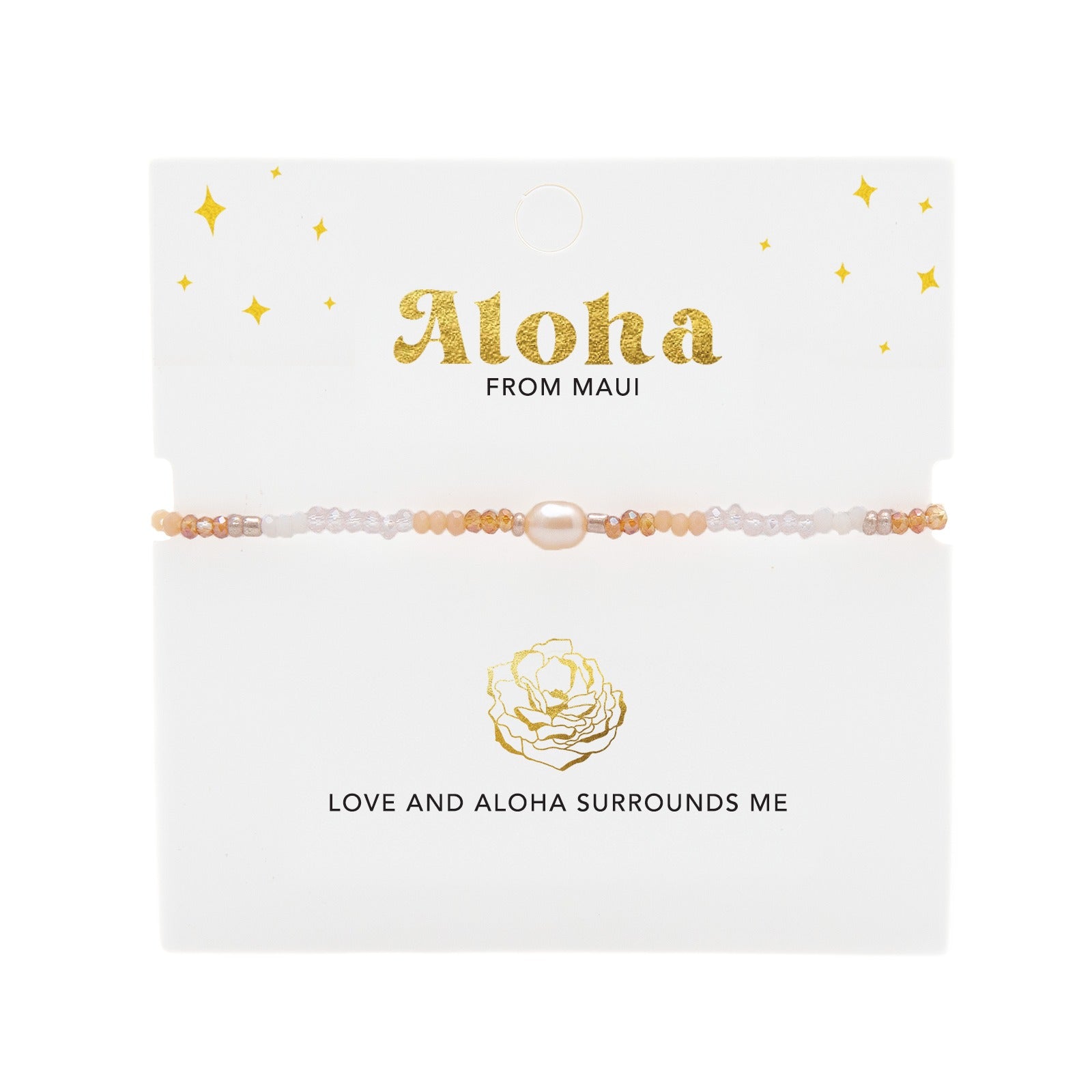 Wear this bracelet as a reminder to embody the heavenly aura and resilient aloha spirit of this special rose. Repeat this mantra as needed: “Love and Aloha Surrounds Me”