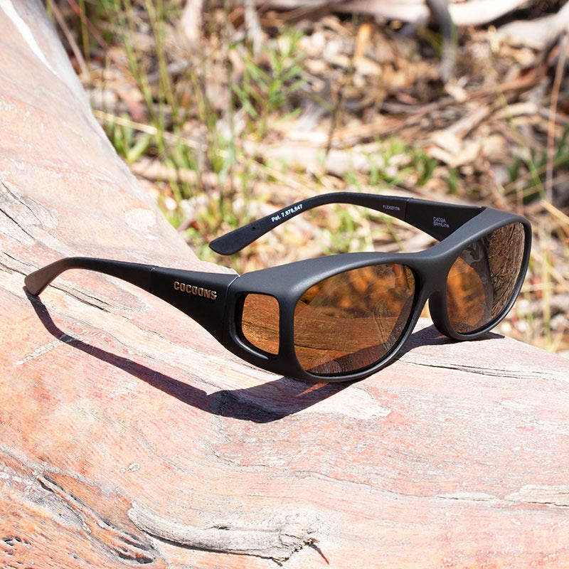 A Soft Touch, jet-black chassis is complimented with a polarized Amber lens system. Scientifically engineered to cut through harsh glare, the amber lens increases contrast and improves depth perception. Extremely popular for use on or near the water, amber is also a great choice for driving. A truly iconic fitover design, the patented Slim Line is a mid-sized fitover with a definitive unisex styling.