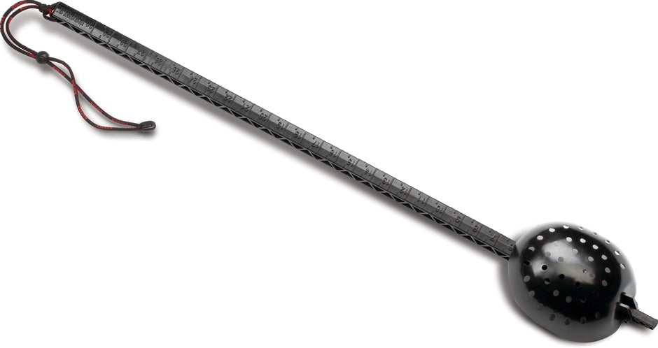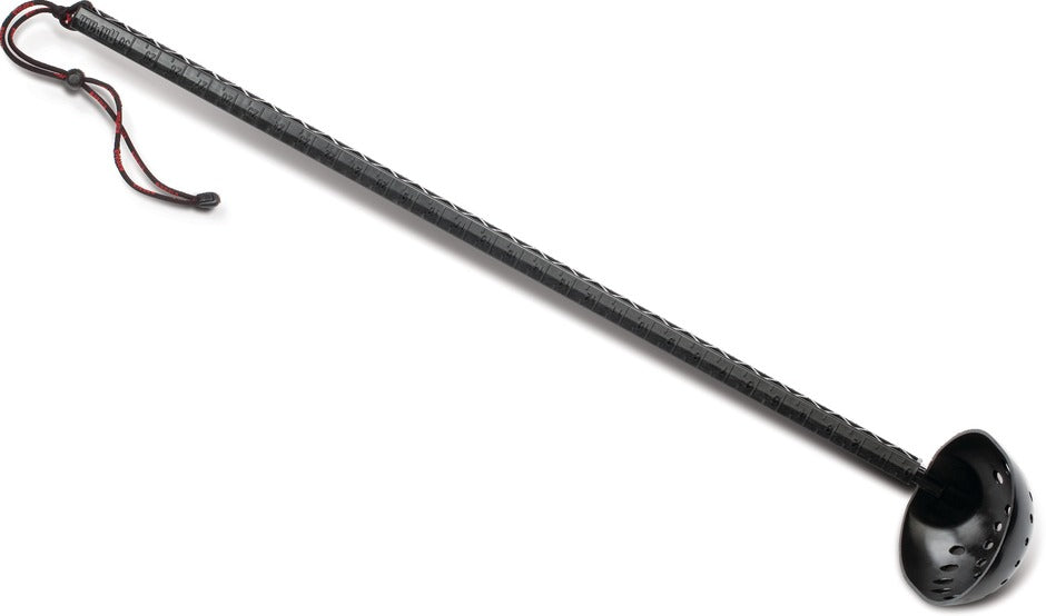 The Rapala Mega Scoop features a 34" handle which allows for use while standing, a 30" ruler, and an adjustable wrist lanyard. The large fold-in scoop removes the maximum amount of slush with a minimum amount of effort. This scoop is just the right length so you can scoop a hole without bending down.