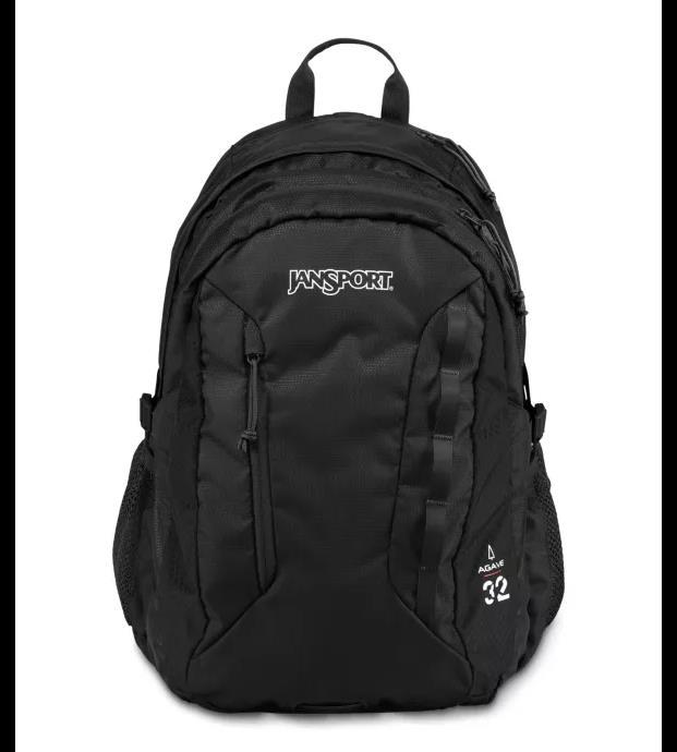 The JanSport Agave daypack features a padded sleeve designed to fit a 3L hydration system or 15 inch laptop, soft tricot lined tablet pocket, AirCore shoulder straps, quick external accessories pocket and a front utility pocket with organizer. #8 zipper on main compartment Adjustable sternum strap Dual side water bottle pockets Front utility pocket with organizer Gear loop Quick access loft pocket Side compression straps Soft tricot lined tablet pocket Sternum strap Two large main compartments Versatile padded sleeve designed to fit a 3L hydration system or 15" laptop Secondary compartment with organizer panel Padded haul handle Expandable main compartment with snap closure Tricot lined and padded loft pocket for accessories.