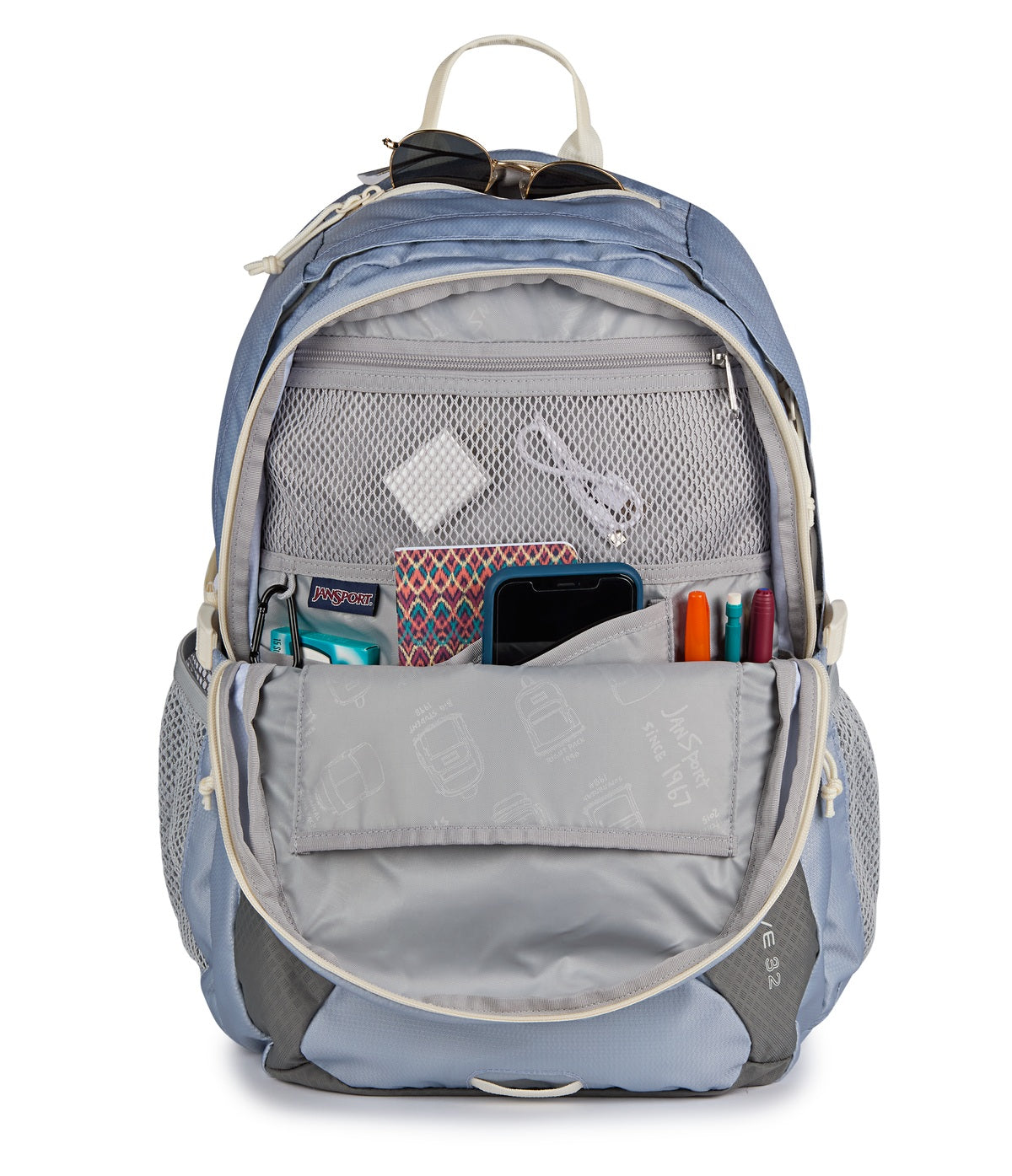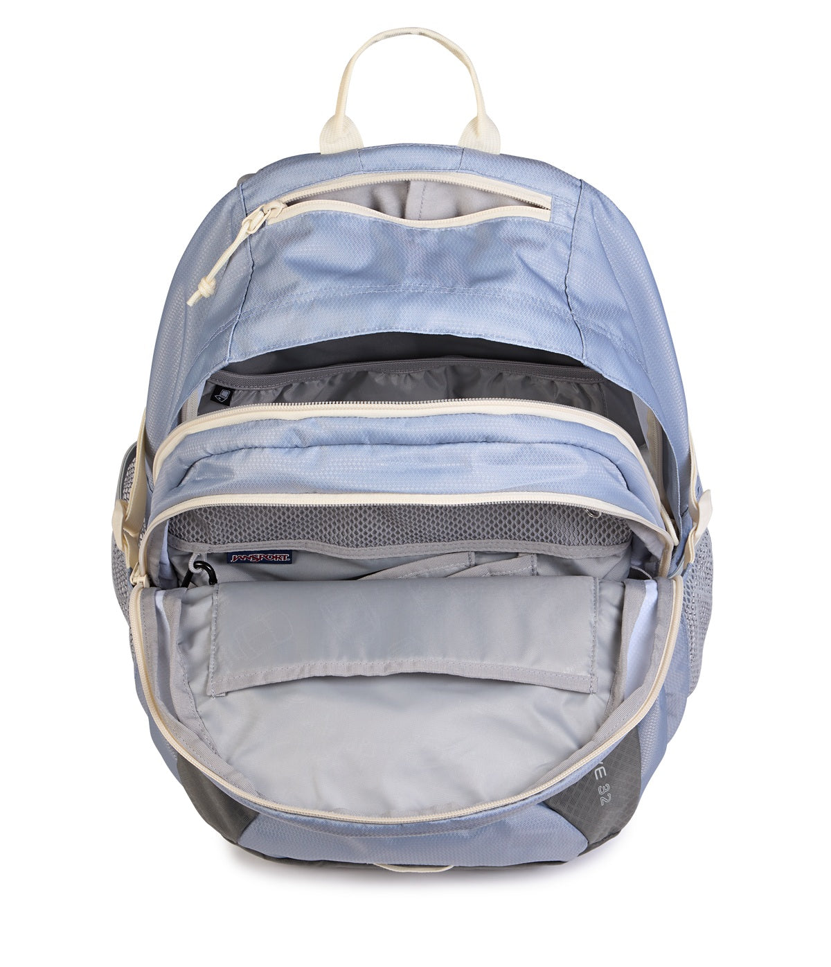 - Pair of mesh side bottle pockets that stretch to fit most bottle sizes