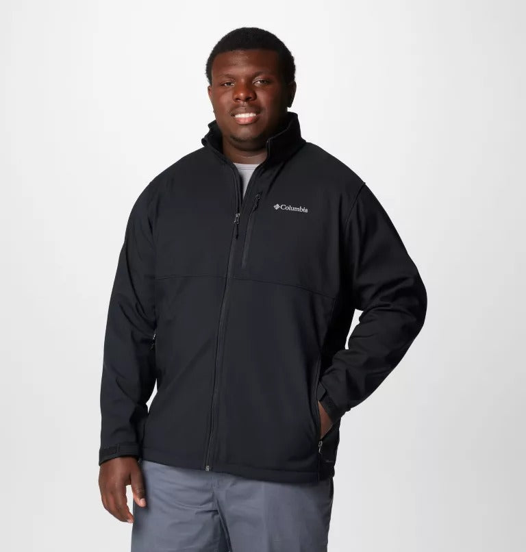 This wind-and-water-resistant softshell will keep you warm—whether you want to stand out or blend right in. It's built for foul-weather outings, with a comfort stretch fit, an adjustable hem, and adjustable cuffs. Made of a durable yet light 100% polyester, with a soft, abrasion resistant chin guard and multiple zippered pockets. Columbia offers this jacket in multiple colors and sizes. Regular Fit. Extended sizing available. To ensure the size you choose is right, utilize our sizing chart and the following measurement instructions: For the sleeves, start at the center back of the neck and measure across the shoulder and down to the sleeve. If you come up with a partial number, round up to the next even number. For the chest, measure at the fullest part of the chest, under the armpits, and over the shoulder blades, keeping the tape measure firm and level.