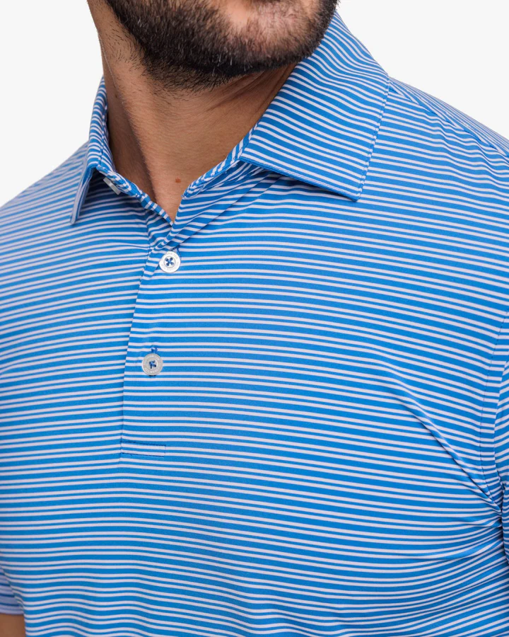 Built for the office, links or drinks the brrr°®-eeze Millwood Stripe Performance Polo actively and continually works to reduce skin temperature with brrr°® fabric technology. Keep your sweat in check with cooling properties that are permanently integrated into the fiber and never fade or wash away. With added features like UV protection, quick dry properties, wicking materials & added stretch, this polo is sure to help you look and feel your best.