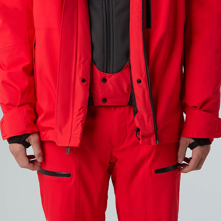 - Snap-down powder skirt with gripper elastic and a jacket-to-pant integration clip