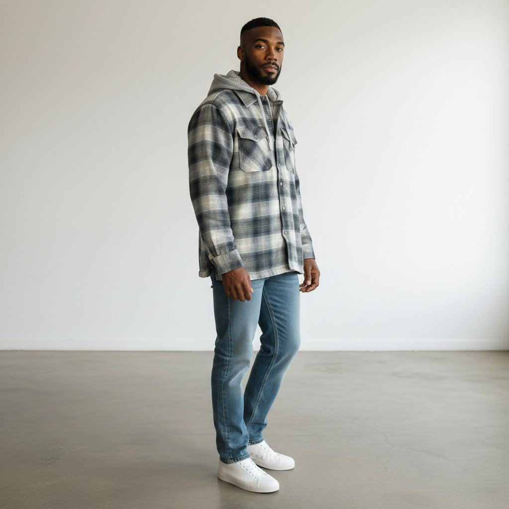 Men's Chuck Button Front Quilt Lined Hood