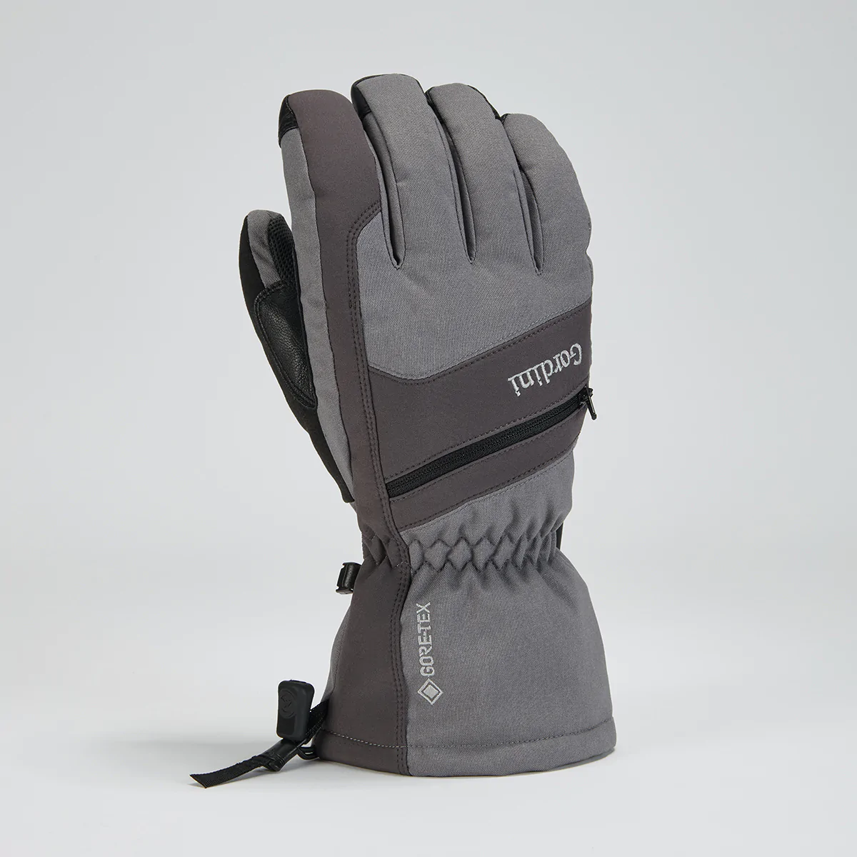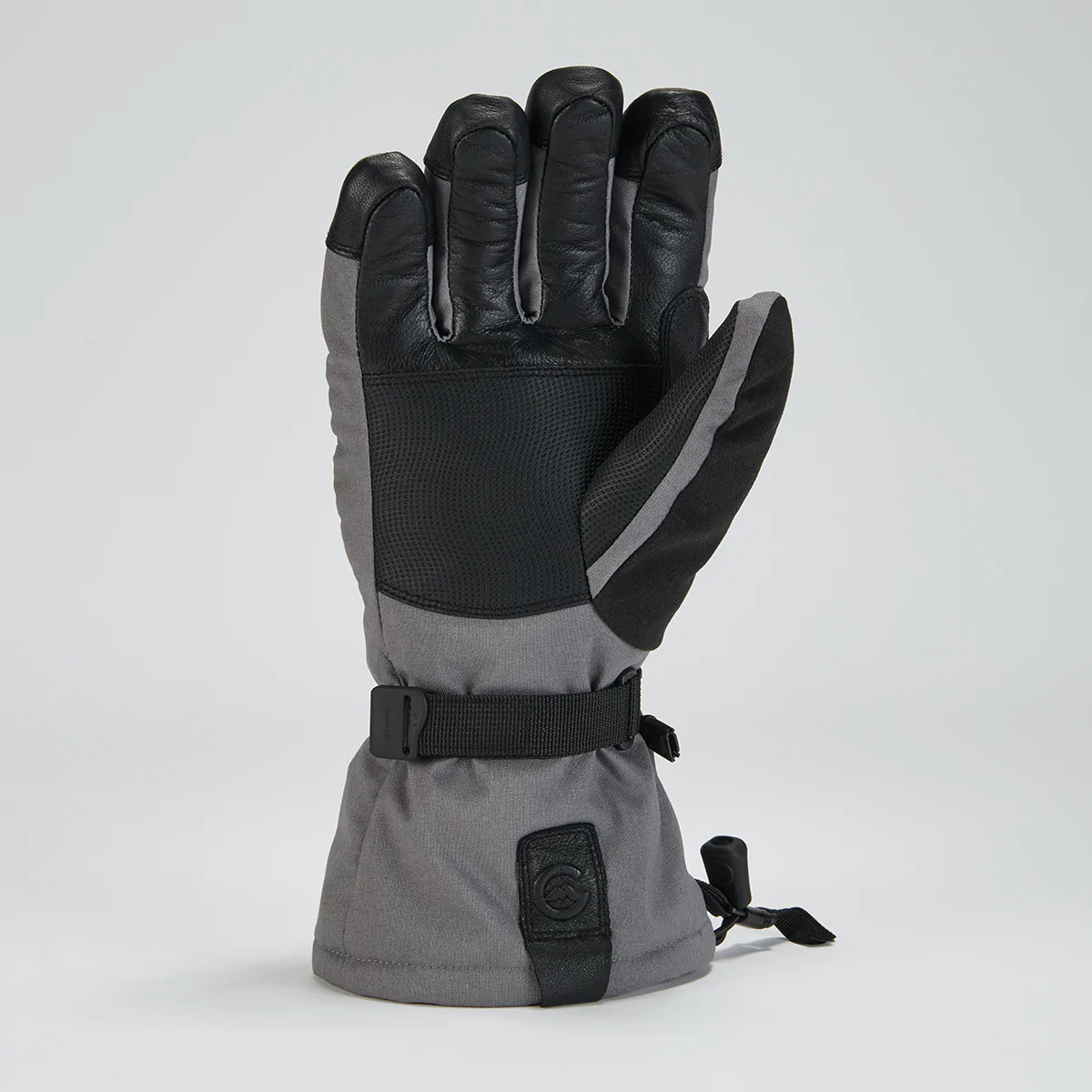 - Gauntlet cuff with drawcord closure and hook-and-loop wrist strap on palm side