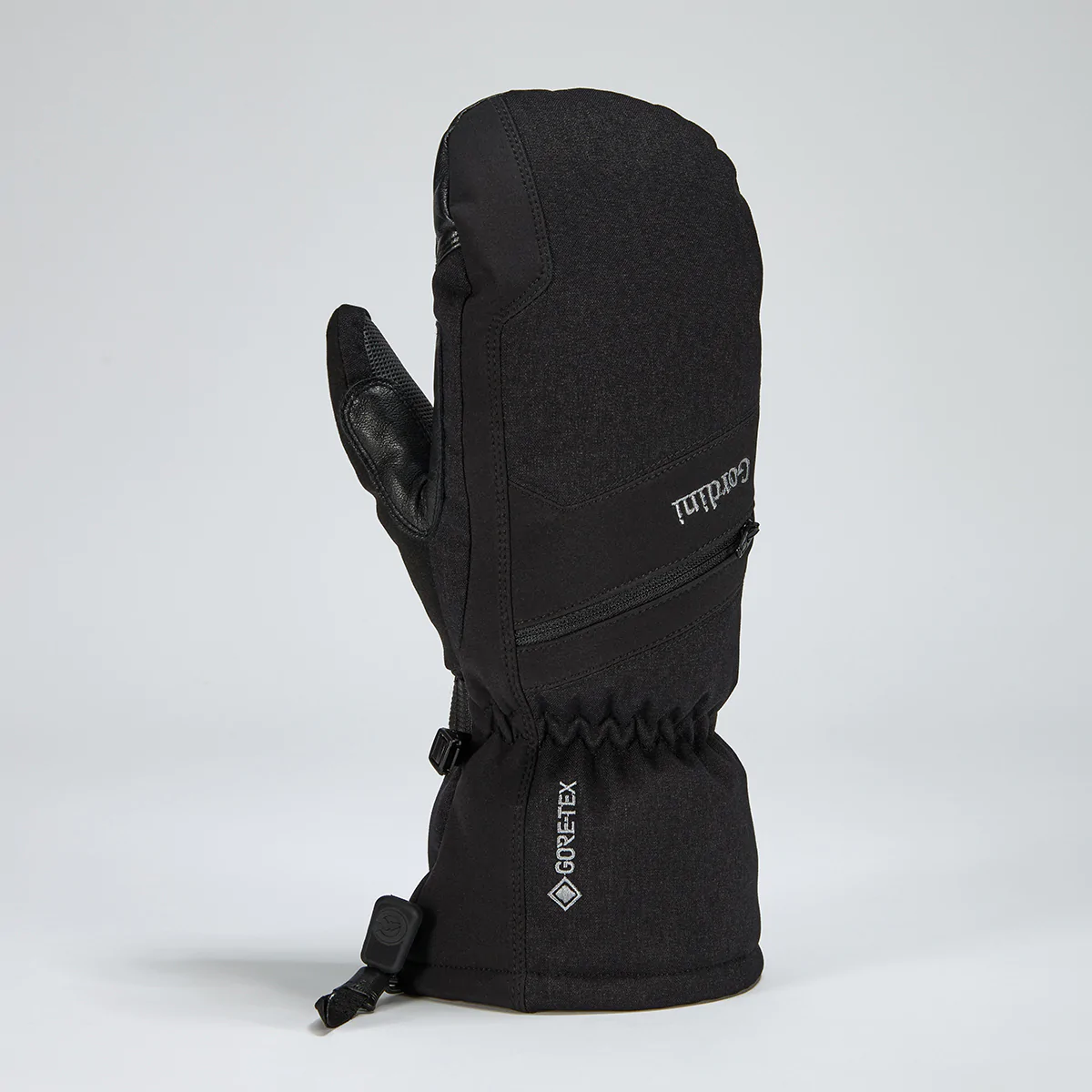 - Gauntlet cuff with drawcord closure and hook-and-loop wrist strap on palm side