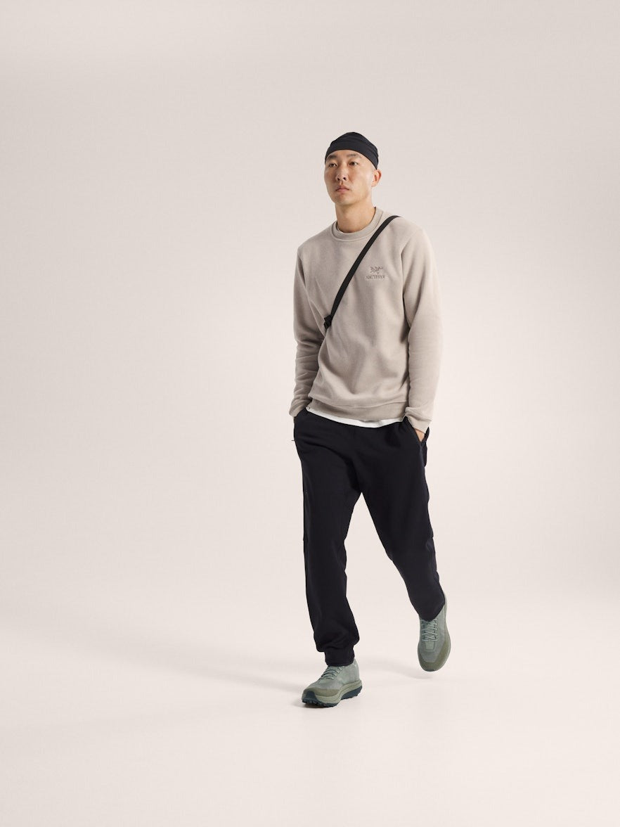 Comfortable, warm, and versatile – pull it on for the drives to the ski hill, quick hikes, cool-down after trail runs, or first thing to cut the morning chill at camp – the 300gsm Emblem blends organically-grown cotton softness with recycled polyester’s sustainable performance. Ribbing at the cuffs and hem holds them place, and the fit lets you move without restriction.