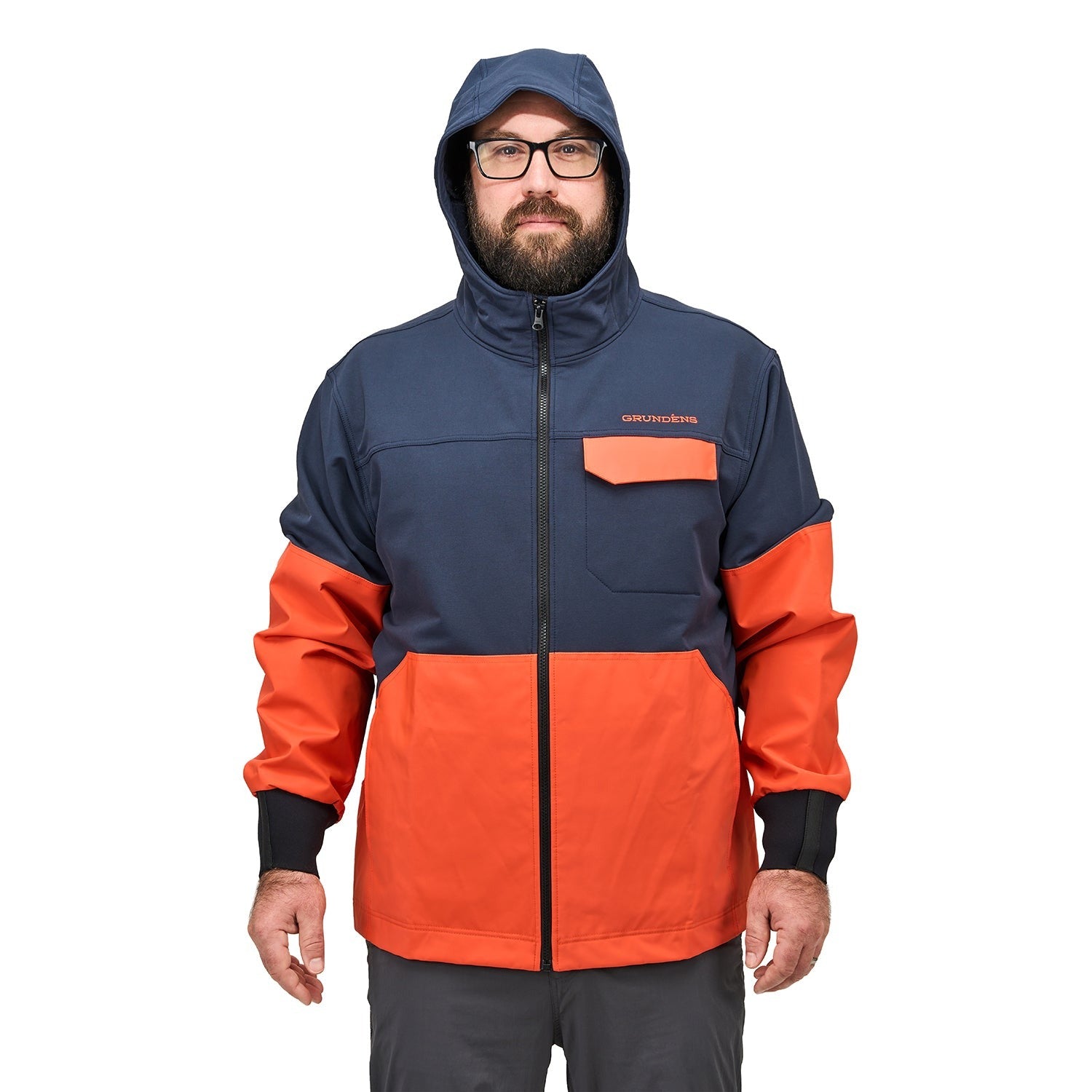 - Full-Zip Front with Left-Chest Snap Closure Pocket and Adjustable Hood