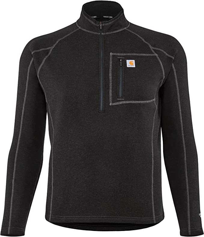 Carhartt Men’s Force Heavyweight Synthetic Wool-Blend Fleece Base Layer Quarter-Zip Top (UH0172-M) is a thermal long-sleeve shirt made of temperature-regulating wool blend material to keep you warm, dry, and comfortable in the harshest cold weather conditions. Force technology, FastDry, and dri-lease yarns work together to wick away sweat and control moisture to keep you dry. Heavyweight polyester-wool blend fabric keeps you warm and is soft against your skin. With a mock-neck zippered collar, this men’s long underwear top is comfortable to wear under clothes or on its own. Rugged Flex is for ease of movement, concealed thumb loops keep your sleeves in place, and tagless labels provide a smooth fit. The zippered chest pocket is a secure and convenient place to store small valuables. Throughout the workday, this base layer top works hard to keep you warm and dry while fighting odor.