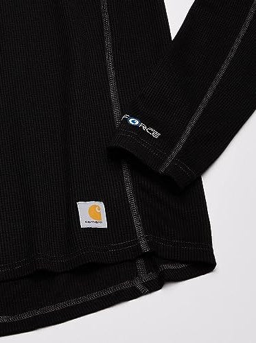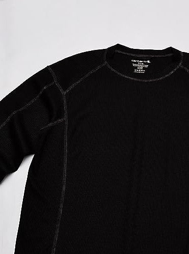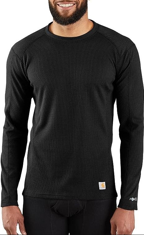 Carhartt Men's Base Force Midweight Classic Crew (MBL113) is a thermal base layer long-sleeve shirt featuring classic waffle knit fabric for easy-wearing warmth. Designed to keep you warm, dry, and comfortable, this crew neck base layer top uses FastDry and Rugged Flex technologies and odor-fighting fabric. FastDry wicks away sweat and Rugged Flex is for ease of movement, giving your arms a full range of motion. Made of 200 GSM/6-ounces of 100% polyester, this base layer shirt is perfect for layering when you need extra protection on cold weather days. Smooth flatlock seams, tagless labels, and fabric cut to move with your body make this base layer top comfortable to wear while working or while relaxing on your days off. Conveniently concealed thumb loops keep your sleeves in place when you put on another layer. This base layer top works as hard as you do to keep you warm, dry, and odor free throughout the workday.