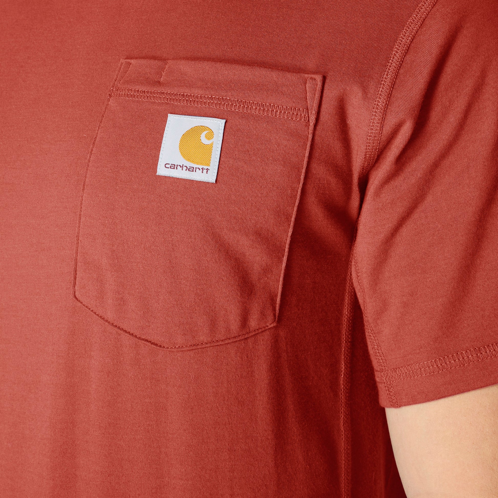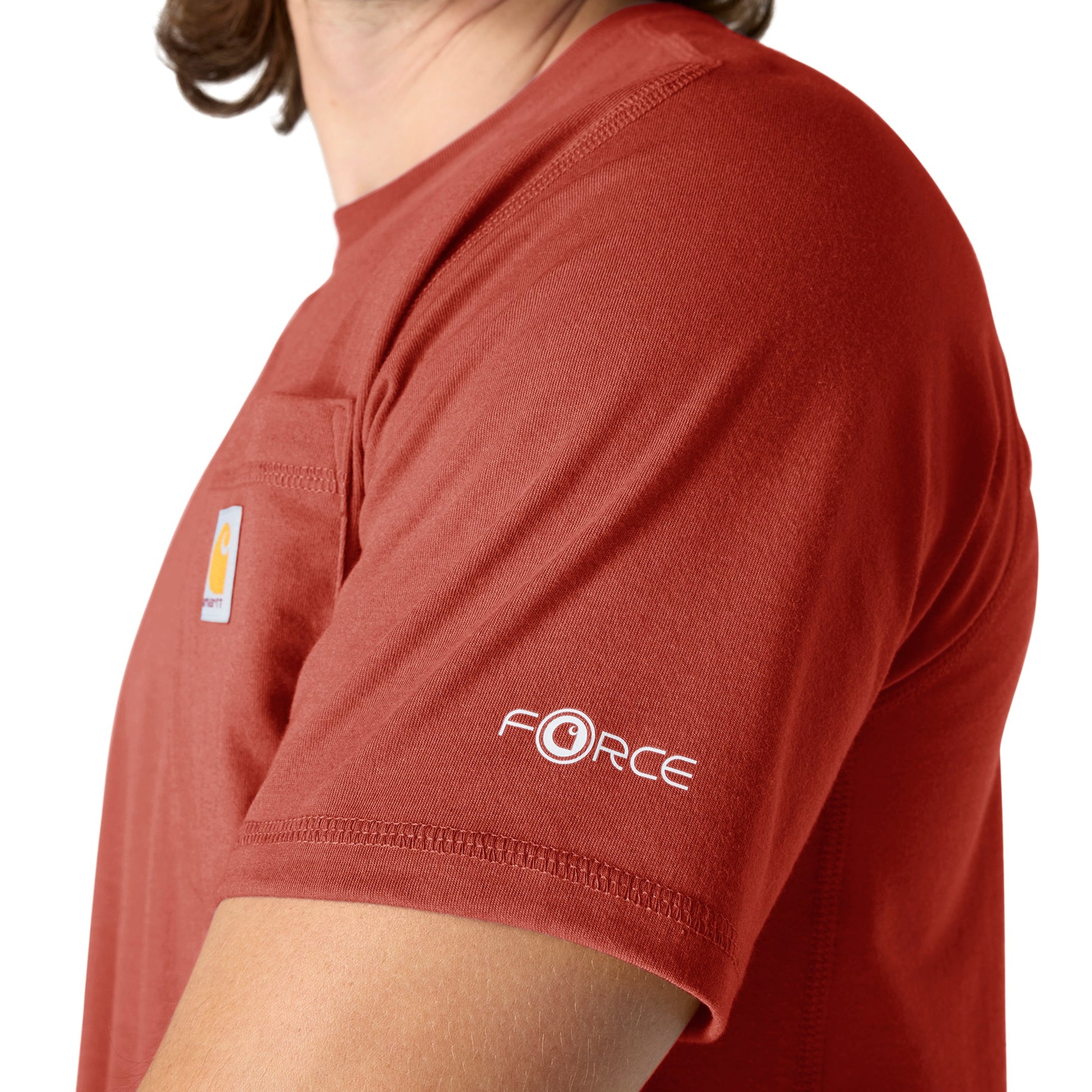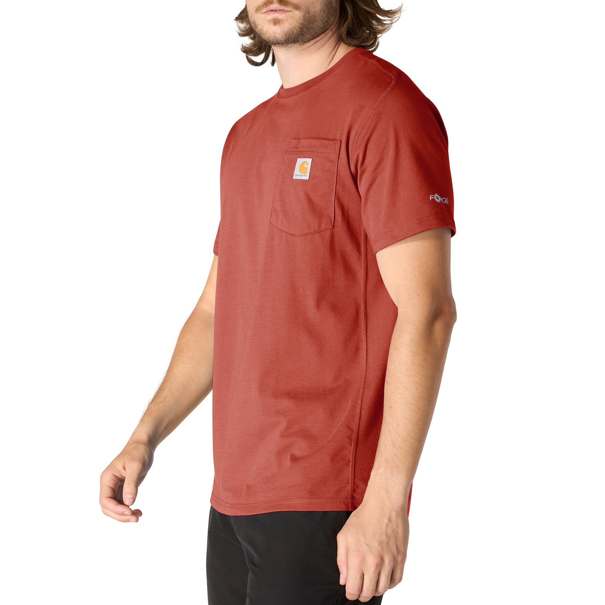 It's much more than a t-shirt! The Carhartt Force® Relaxed-Fit Midweight Short-Sleeve Pocket T-Shirt for Men features advantages to keep you comfortable when you're working. When it's hot at the job site, built-in Carhartt® Force technology wicks sweat for quicker evaporation. The advancement of FastDry® keeps you feeling cool all day long, and the UPF 25+ sun protection shields your skin from the sun's harshest rays. Smooth flatlock seams add itch-free comfort. Raglan sleeves ensure freedom of movement. Ventilated side panels promote cooling air circulation. Other features include a drop-tail hem, tagless neck label, and a left-chest pocket with pen stall.