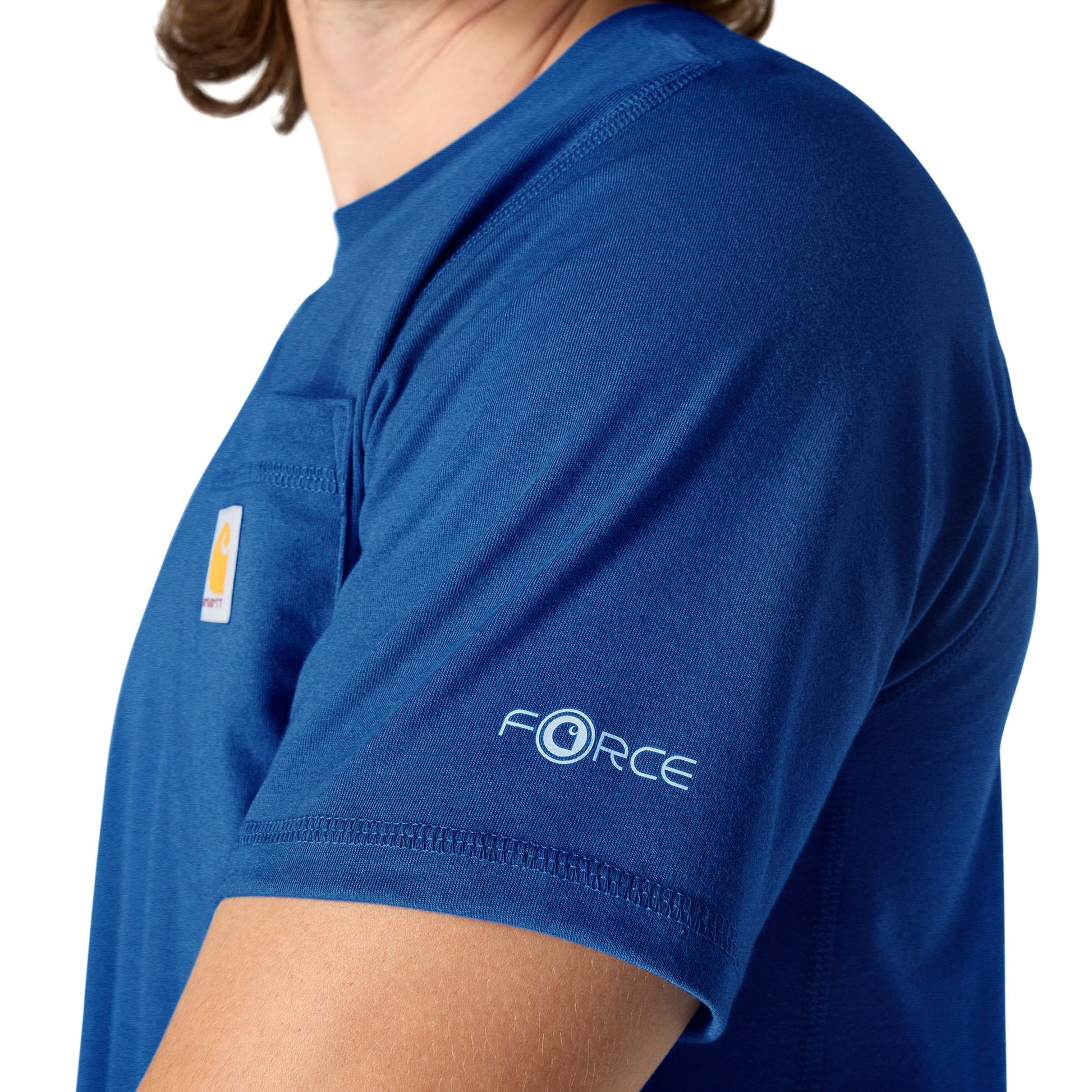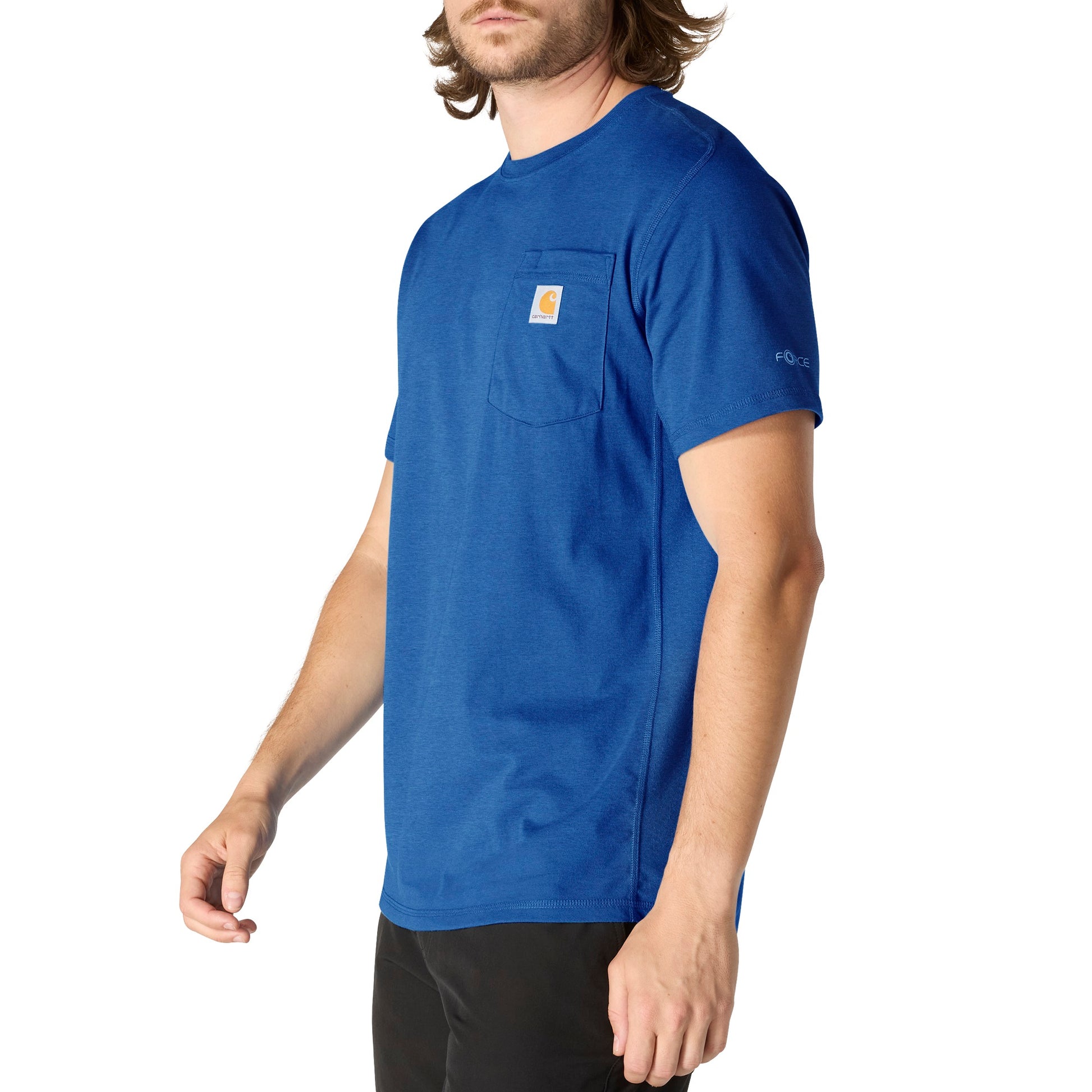 It's much more than a t-shirt! The Carhartt Force® Relaxed-Fit Midweight Short-Sleeve Pocket T-Shirt for Men features advantages to keep you comfortable when you're working. When it's hot at the job site, built-in Carhartt® Force technology wicks sweat for quicker evaporation. The advancement of FastDry® keeps you feeling cool all day long, and the UPF 25+ sun protection shields your skin from the sun's harshest rays. Smooth flatlock seams add itch-free comfort. Raglan sleeves ensure freedom of movement. Ventilated side panels promote cooling air circulation. Other features include a drop-tail hem, tagless neck label, and a left-chest pocket with pen stall.
