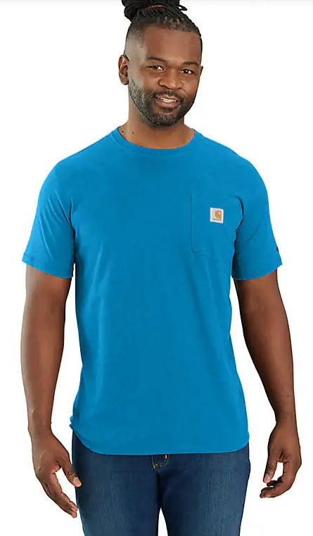 It's much more than a t-shirt! The Carhartt Force® Relaxed-Fit Midweight Short-Sleeve Pocket T-Shirt for Men features advantages to keep you comfortable when you're working. When it's hot at the job site, built-in Carhartt® Force technology wicks sweat for quicker evaporation. The advancement of FastDry® keeps you feeling cool all day long, and the UPF 25+ sun protection shields your skin from the sun's harshest rays. Smooth flatlock seams add itch-free comfort. Raglan sleeves ensure freedom of movement. Ventilated side panels promote cooling air circulation. Other features include a drop-tail hem, tagless neck label, and a left-chest pocket with pen stall.