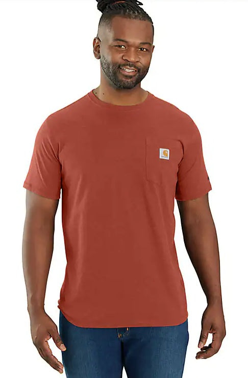 It's much more than a t-shirt! The Carhartt Force® Relaxed-Fit Midweight Short-Sleeve Pocket T-Shirt for Men features advantages to keep you comfortable when you're working. When it's hot at the job site, built-in Carhartt® Force technology wicks sweat for quicker evaporation. The advancement of FastDry® keeps you feeling cool all day long, and the UPF 25+ sun protection shields your skin from the sun's harshest rays. Smooth flatlock seams add itch-free comfort. Raglan sleeves ensure freedom of movement. Ventilated side panels promote cooling air circulation. Other features include a drop-tail hem, tagless neck label, and a left-chest pocket with pen stall.