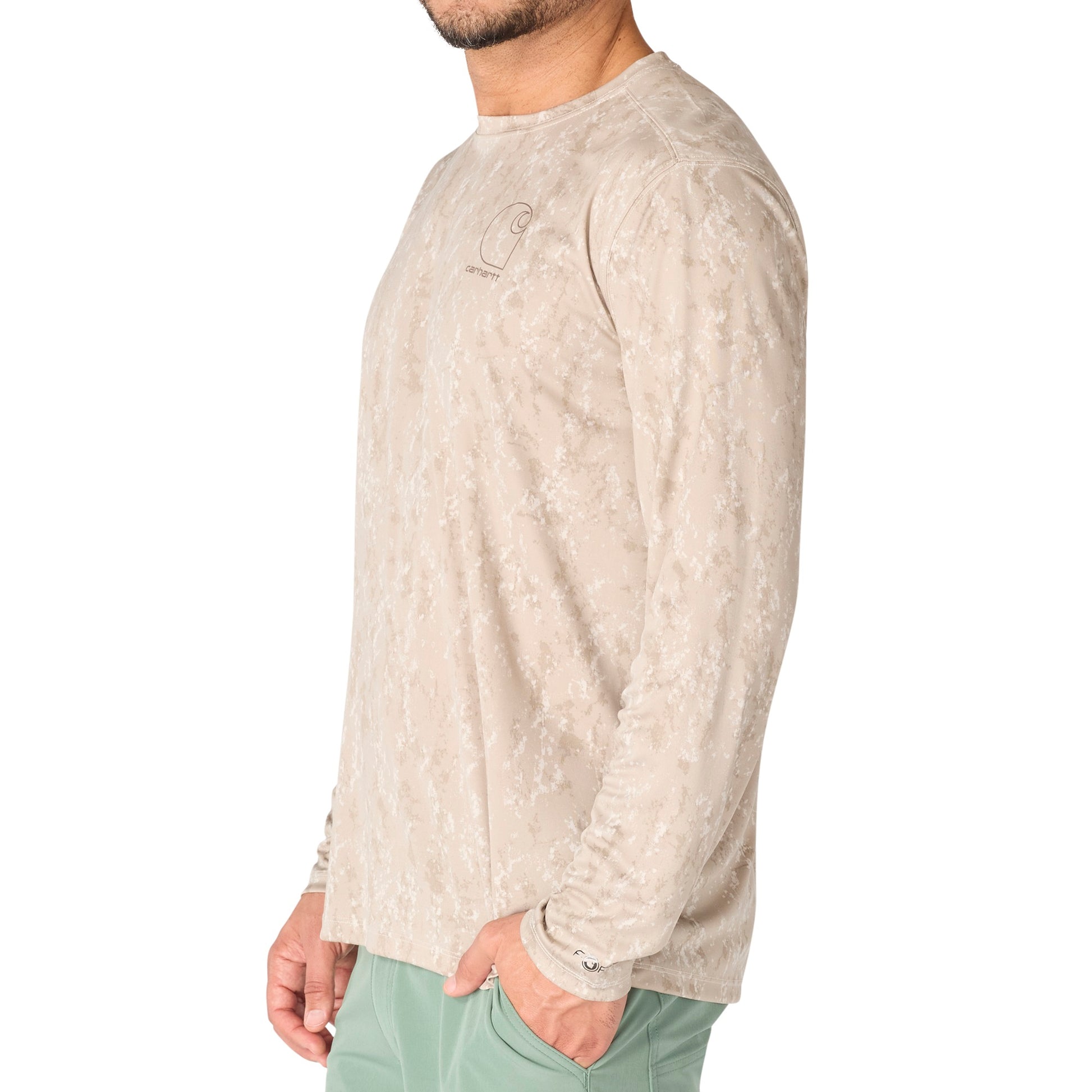 When the temperature rises, stay cool and dry in the Men's Force Sun Defender Relaxed Print Long Sleeve T-Shirt. It's made from sweat-fighting, odor-resistant fabric with sun protection that won't stop working. It features a watercolor camouflage print and a relaxed fit that's closer to the body.