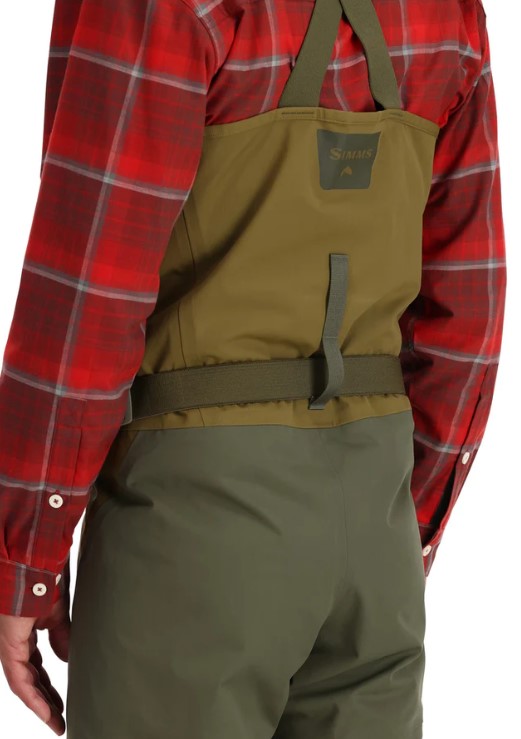 • Stretch elastic suspenders with Simms custom opposing male and female buckles
