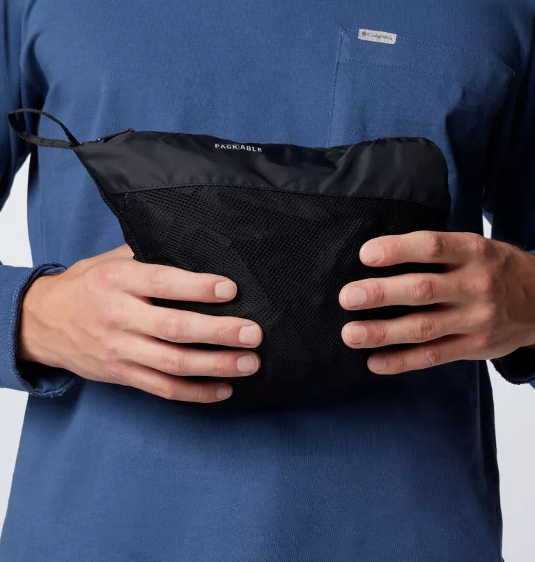 Your go-to light-rain layer. This waterproof jacket keeps you dry from trail to town and packs down into its own chest pocket to keep you ready for surprise showers.