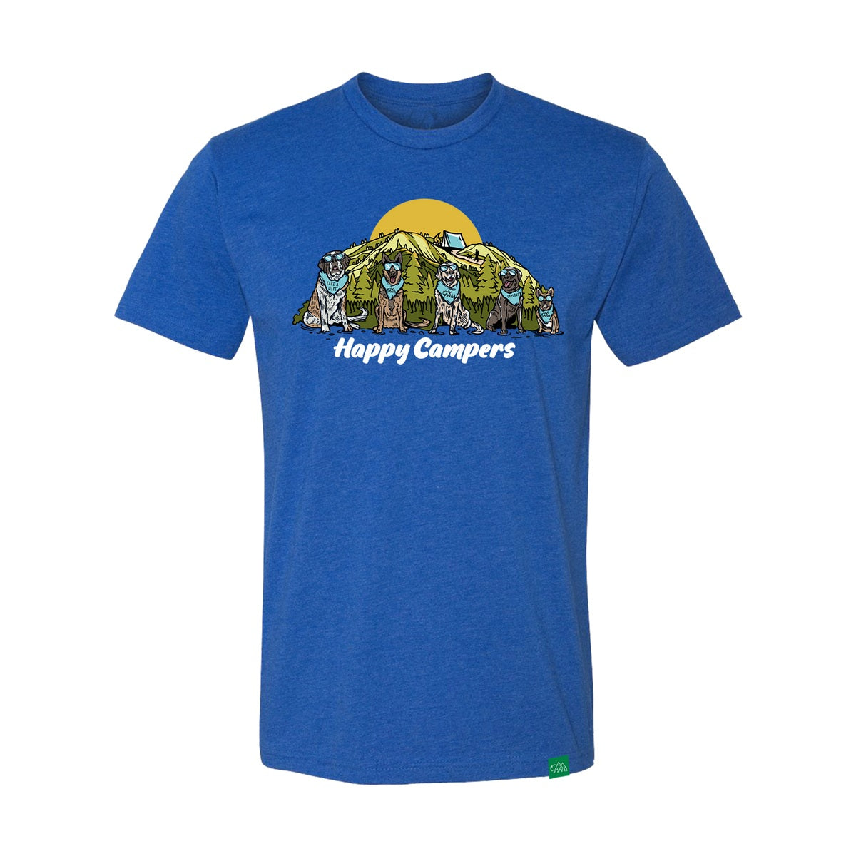 If you're a happy camper when you're outside, this design is for you. If you're happiest in a tent with four-legged fury pals, say no more. Regardless, choose to be a Happy Camper — the world is a better place for it.