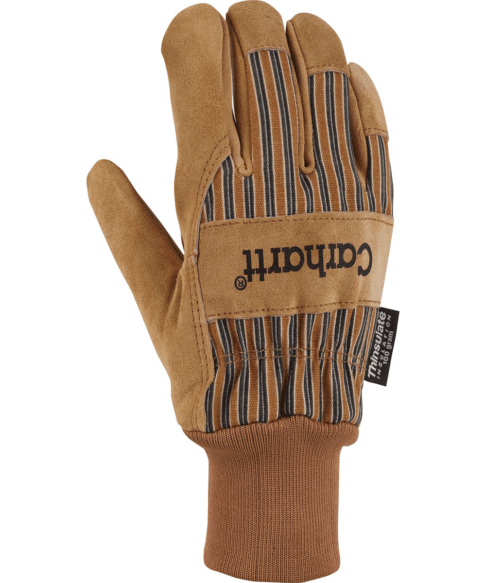 Chop, stack or carry firewood without beating up your hands. These men's work gloves are made of cotton duck with suede cowhide palm and knuckle protection. A brushed lining and insulation keep hands warm and comfortable, and a knit wrist blocks out debris.