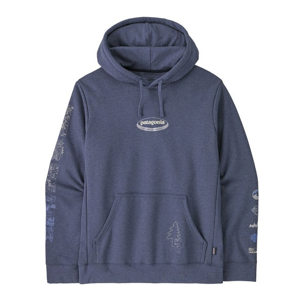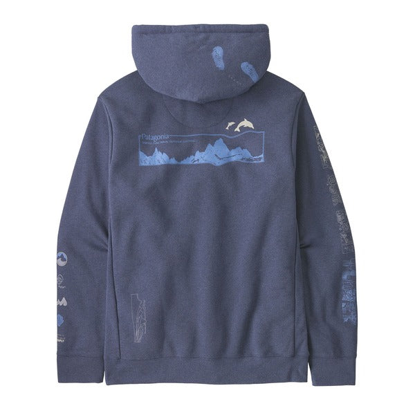 Long Way 'Round artwork takes us back graphically. Look for our circa '95 oval logo; the cult-favorite Rhythm™ design for climbing clothes; an early surfboard graphic; our Water Girl® shell and more. We screen printed the graphic on our Long Way 'Round Uprisal Hoody, which is made with 100% recycled knit fleece with a brushed interior and natural stretch. By utilizing fabric scraps and recycled bottles, this garment reduces our reliance on virgin raw materials. Made in a Fair Trade Certified™ factory.