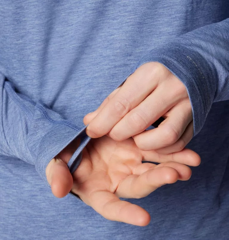 - Thumbholes keep sleeves in place and extend the cuffs over your hands for more sun protection