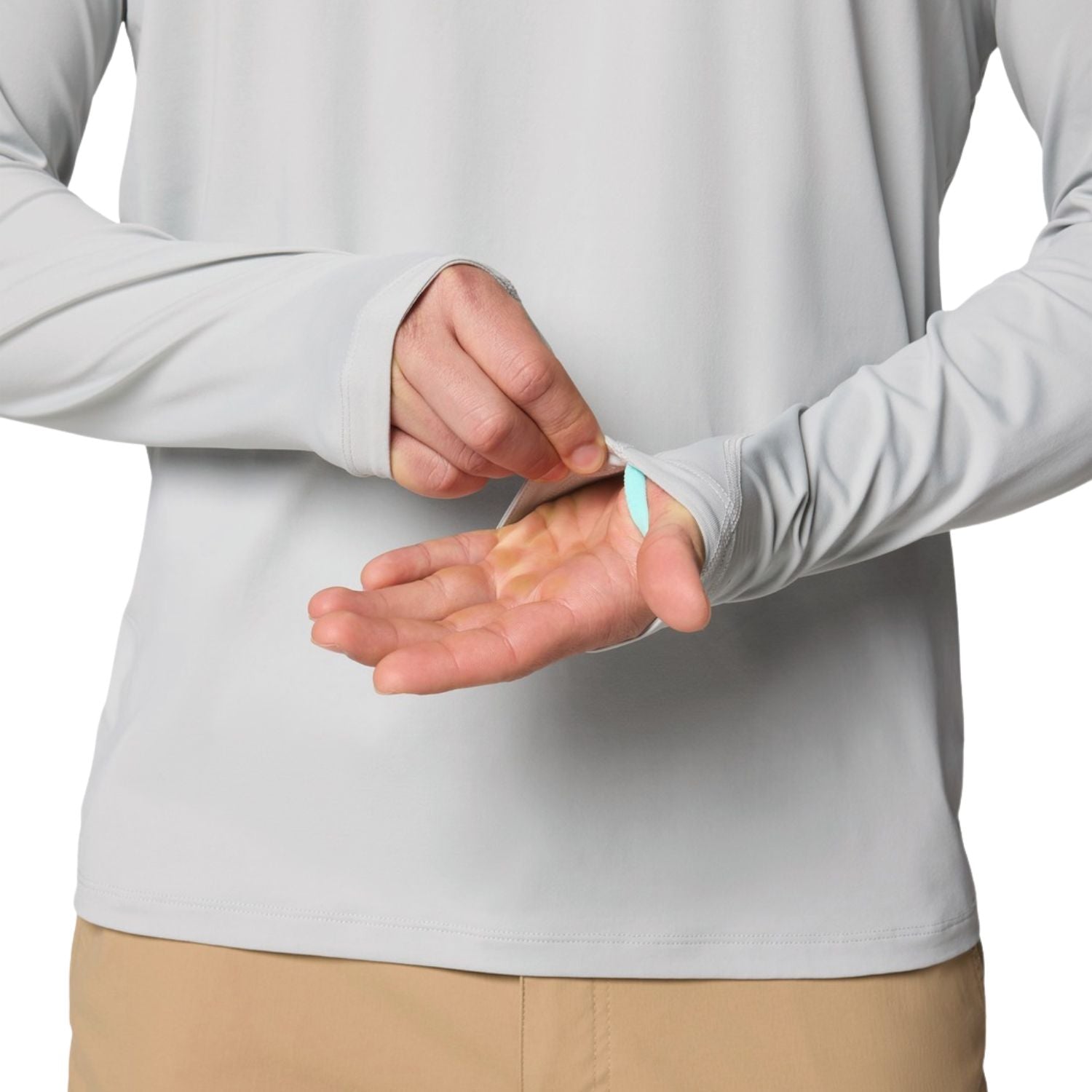 - Sun-blocking cuffs with thumbholes can be pulled down over the hands for added protection