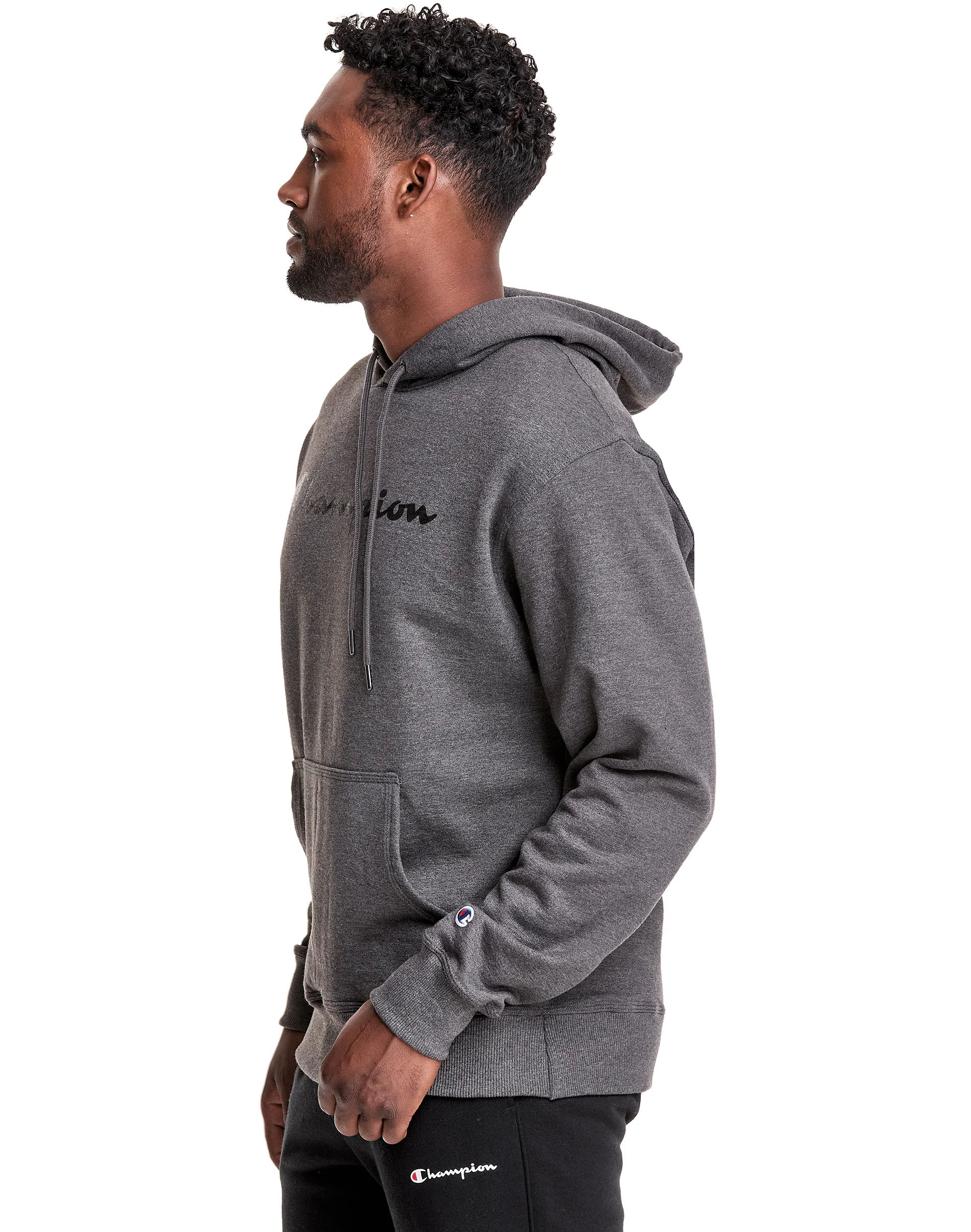 Made for any season, our Powerblend® Fleece Hoodie is a customer favorite for warmth without the extra weight. Ultra soft and keeps its great fit and comfort no matter how hard you play. The details make the difference, this midweight men's hoodie is double stitched for a sturdy fit, a double-layer hood with metal grommets, soft back neck tape and hand-warming pouch pocket. Screenprint Champion logo amps up your sport style with joggers or sweatpants.