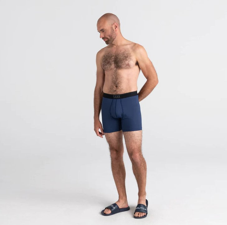 The slim-fit Saxx Men’s Quest Boxer Brief are form-fitting around the butt and thighs. Features a fly for easy access. The guy who's going places. Made using a quick-dry mesh, Quest holds its own on any outdoor adventure, while still possessing the comfort required for all-day wear. BallPark Pouch™, Three-D Fit™, Flat Out Seams™.