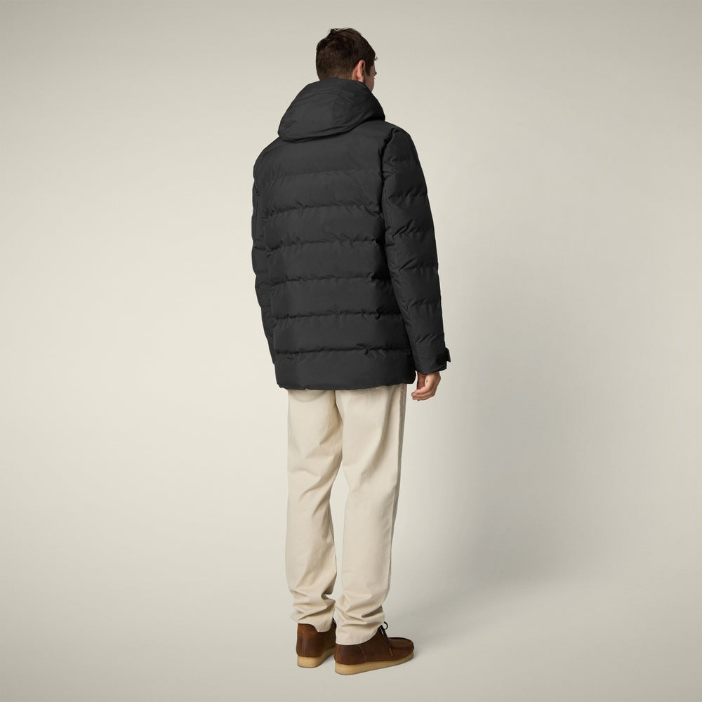 Brave the cold weather with the Quinlan model men's parka. Designed with heat-sealed quilting, it features a two-way zipper concealed by a snap-button flap for added protection. Zippered welt pockets with flannel lining, along with low flap pockets secured by snap buttons, offer practical storage. The adjustable drawstring waistband, cuff straps, and black Lycra inner cuffs ensure optimal comfort and warmth.