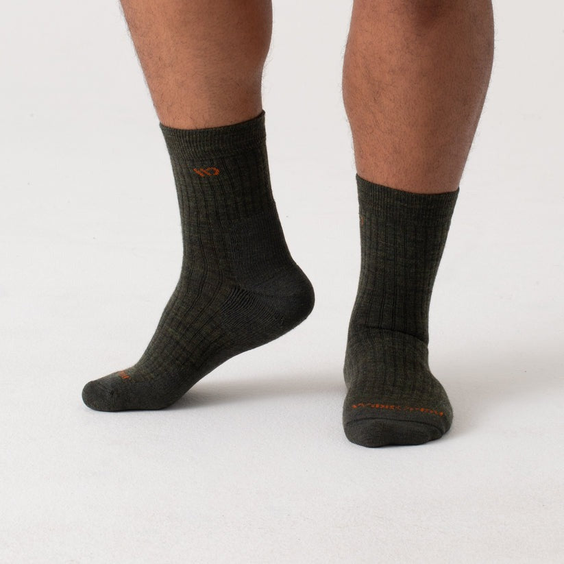 A solid, “every occasion” sock. Made of a midweight, terry loop Merino Wool for multi - season activity (and lounging), the Men’s Solid Cushioned Micro Crews are the perfect height, designed to reach just over to top of a boot or high top — no adjusting throughout the day required.