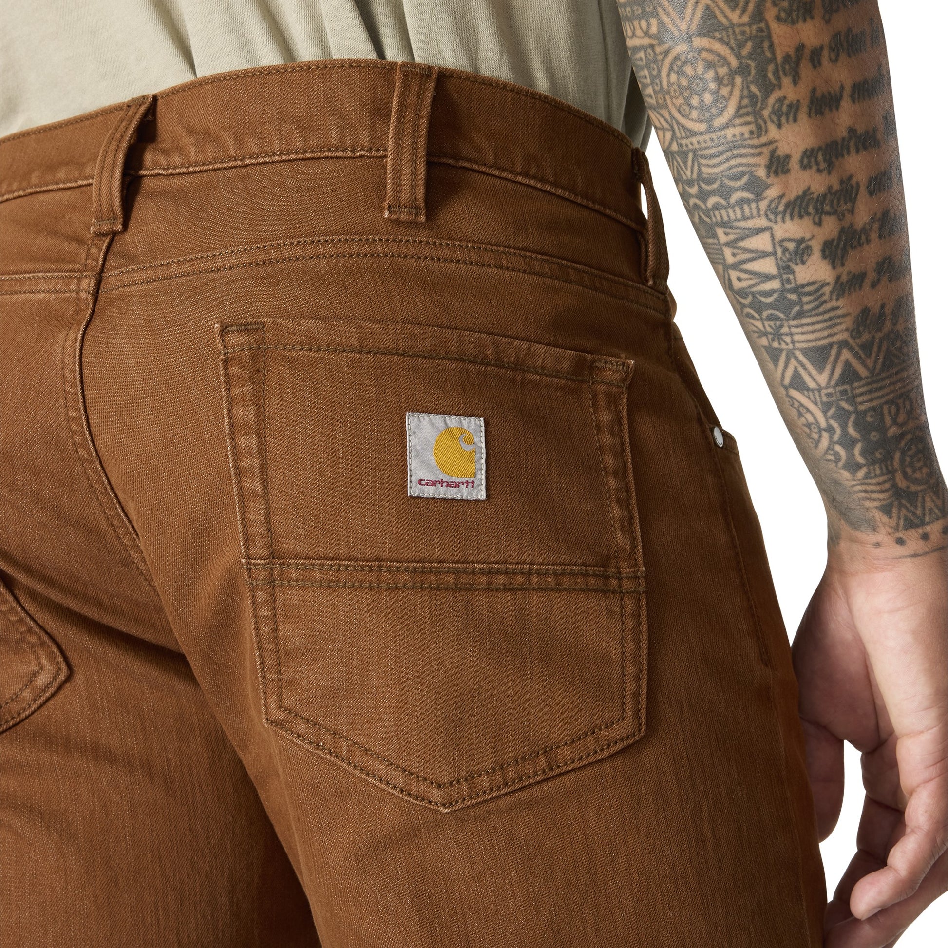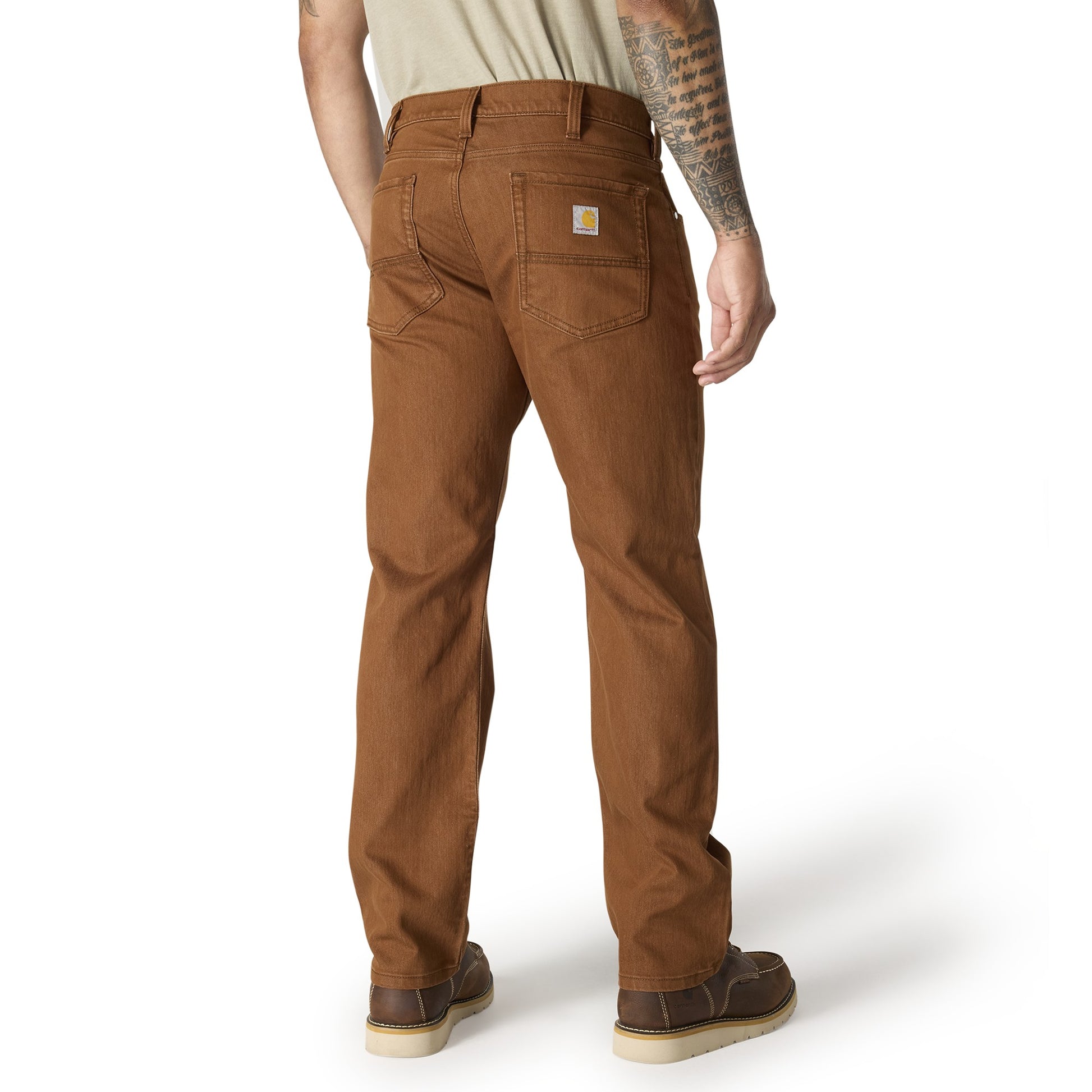 Featuring a classic five-pocket design, proven Carhartt durability, and straight leg opening, these garment dyed jeans are built with Rugged Flex® stretch technology so you can squat, kneel, and bend with ease. The garment-dyed denim blend material provides a worn-in look from first wear and the loose fit is roomy through the seat and thigh.