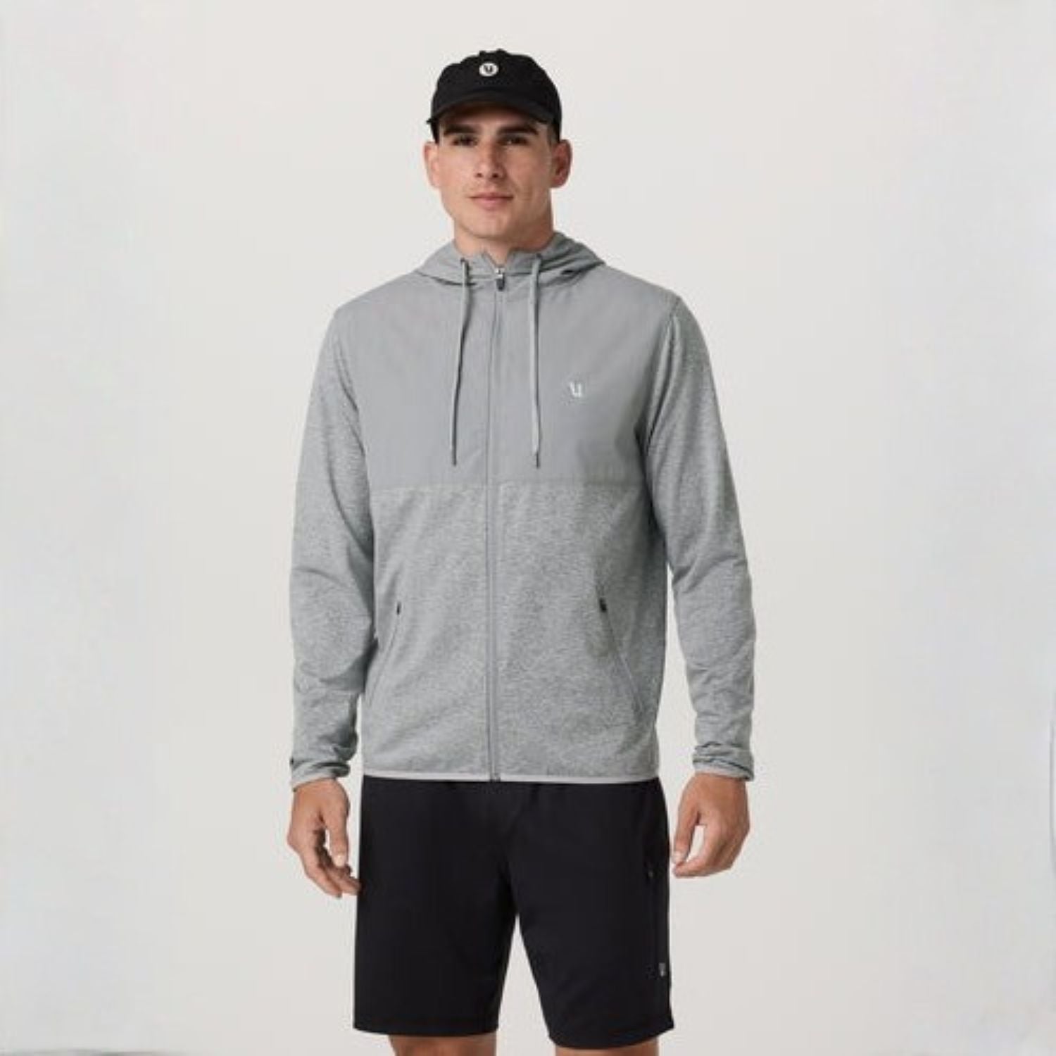 This jacket checks the boxes for both soft performance stretch knit plus protective nylon, making it perfect for comfortable outdoor wear. Moisture-wicking fabric along with nylon overlays, a drawcord hoodie, and zip pockets keep you in check. Great for training and running.