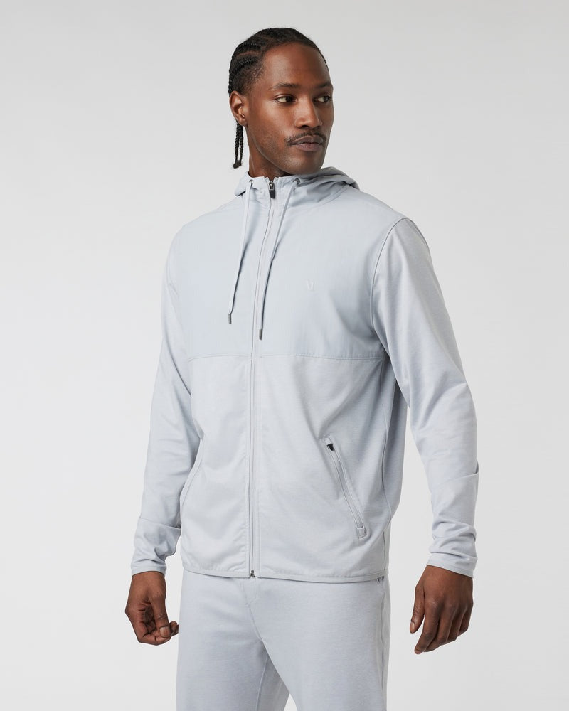 This jacket checks the boxes for both soft performance stretch knit plus protective nylon, making it perfect for comfortable outdoor wear. Moisture-wicking fabric along with nylon overlays, a drawcord hoodie, and zip pockets keep you in check. Great for training and running.