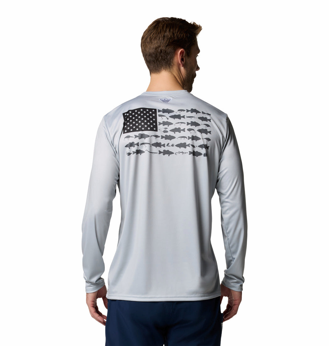 This lightweight, high-performance long-sleeve shirt is built for comfort on or off the water with built-in UPF 50 sun protection, advanced moisture-wicking fabric, and an eye-catching "fish flag" print design.