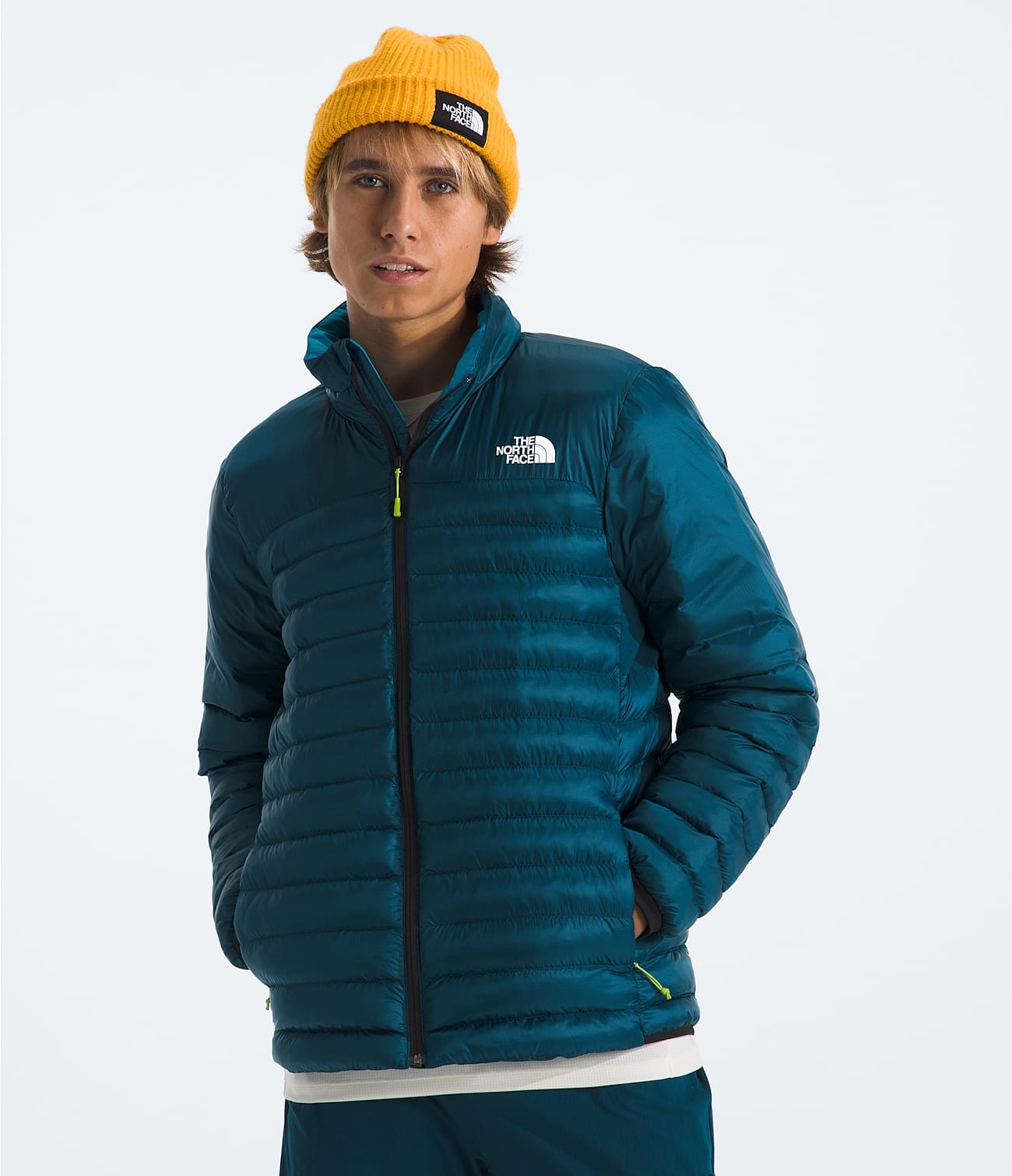 - Exposed center front zip with an internal draft flap and chin guard