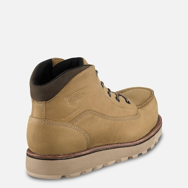 This lightweight, slip-resistant, modern-looking chukka version of an iconic Red Wing work boot provides superior stability, superb underfoot feel and all-day comfort for a variety of medium-duty work. Advanced waterproofing on the leather upper helps to keep the feet dry and comfortable in wet conditions, while non-metallic safety toe protection, electrical hazard protection and best-in-class chemical and heat resistance provide an additional layer of confidence on the jobsite. The 90-degree heel offers excellent stability when encountering uneven terrain. Traction Tred Lite keeps you sure-footed when on the move at all times, making it ideal for trades such as distribution, construction, and manufacturing.