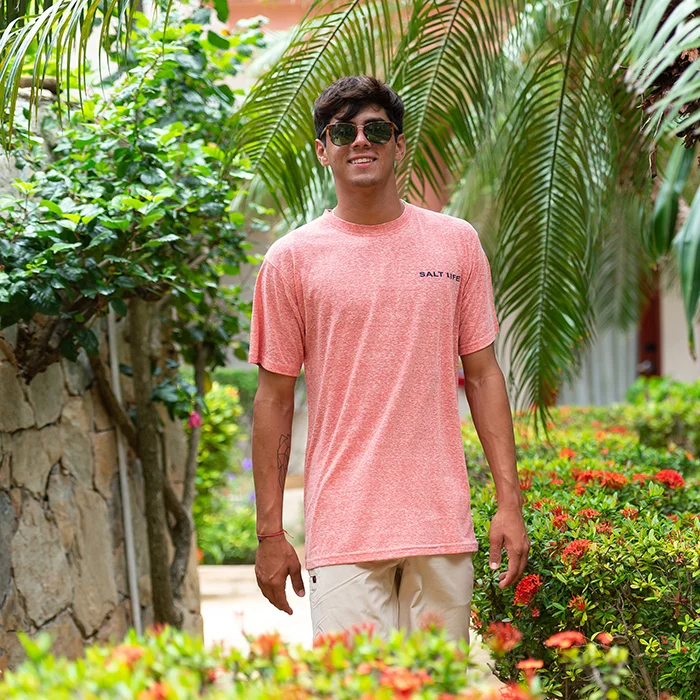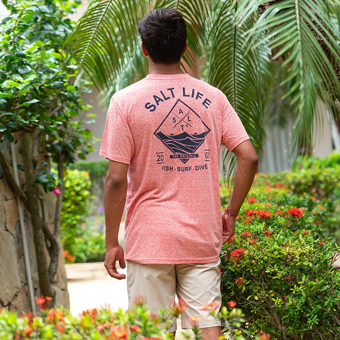 The Waterman Waves short sleeve tee is sure to be a spring staple! This tri-blend fitted tee features a crew neckline, with a front and back screen printed logo. Made from a polyester, cotton, and rayon blend – this Salt Life t-shirt is perfect for warm weather.