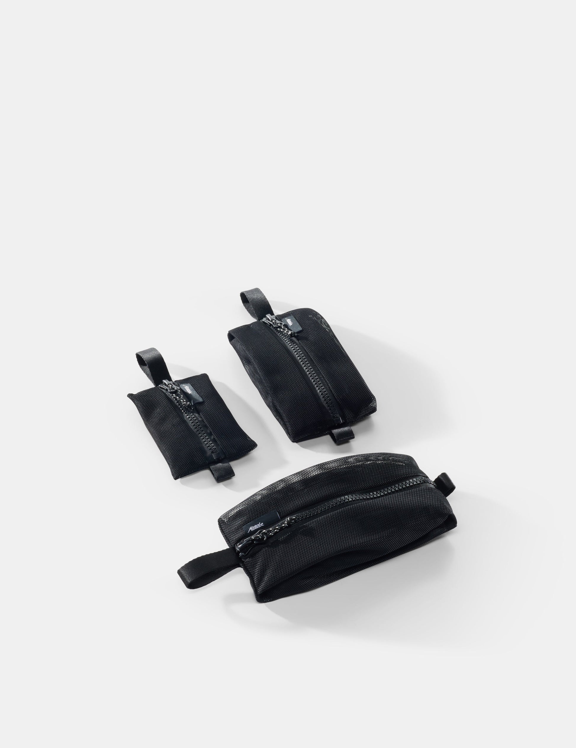 The Mesh Organizer Bag Set tames the small stuff — chapstick, earplugs, charging cables, all the essentials that tend to disappear. Three see-through pouches, one less thing to worry about.
