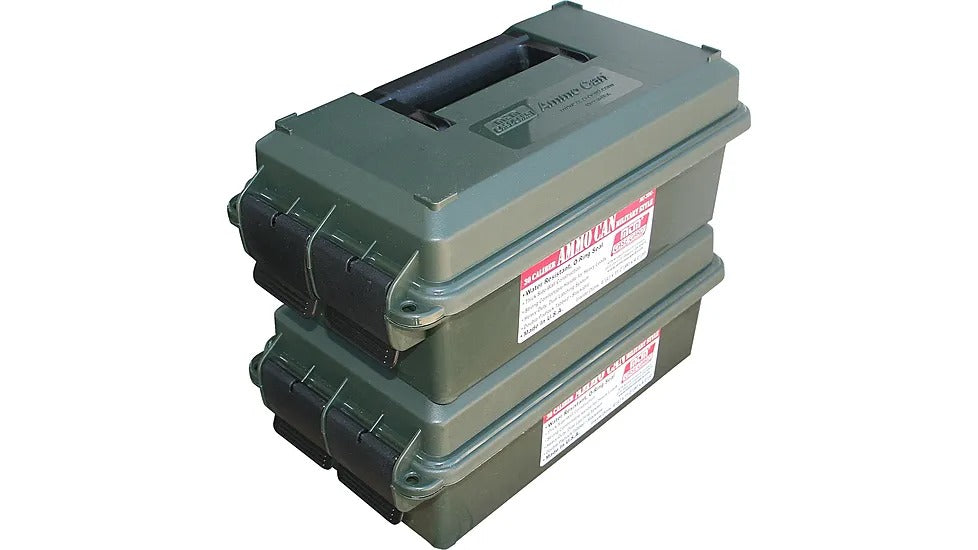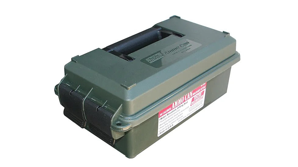 The MTM Molded Military Style Stackable Ammo Can comes with the classic O-Ring seal. Molded out of rugged polypropylene plastic, comfortably handled, reinforced bottom with a thick sidewall design to hold up to some pretty harsh treatment. Heavy-duty dual latching system for a superior water-resistant seal, double padlock tabs along with molded-in stacking ridges.