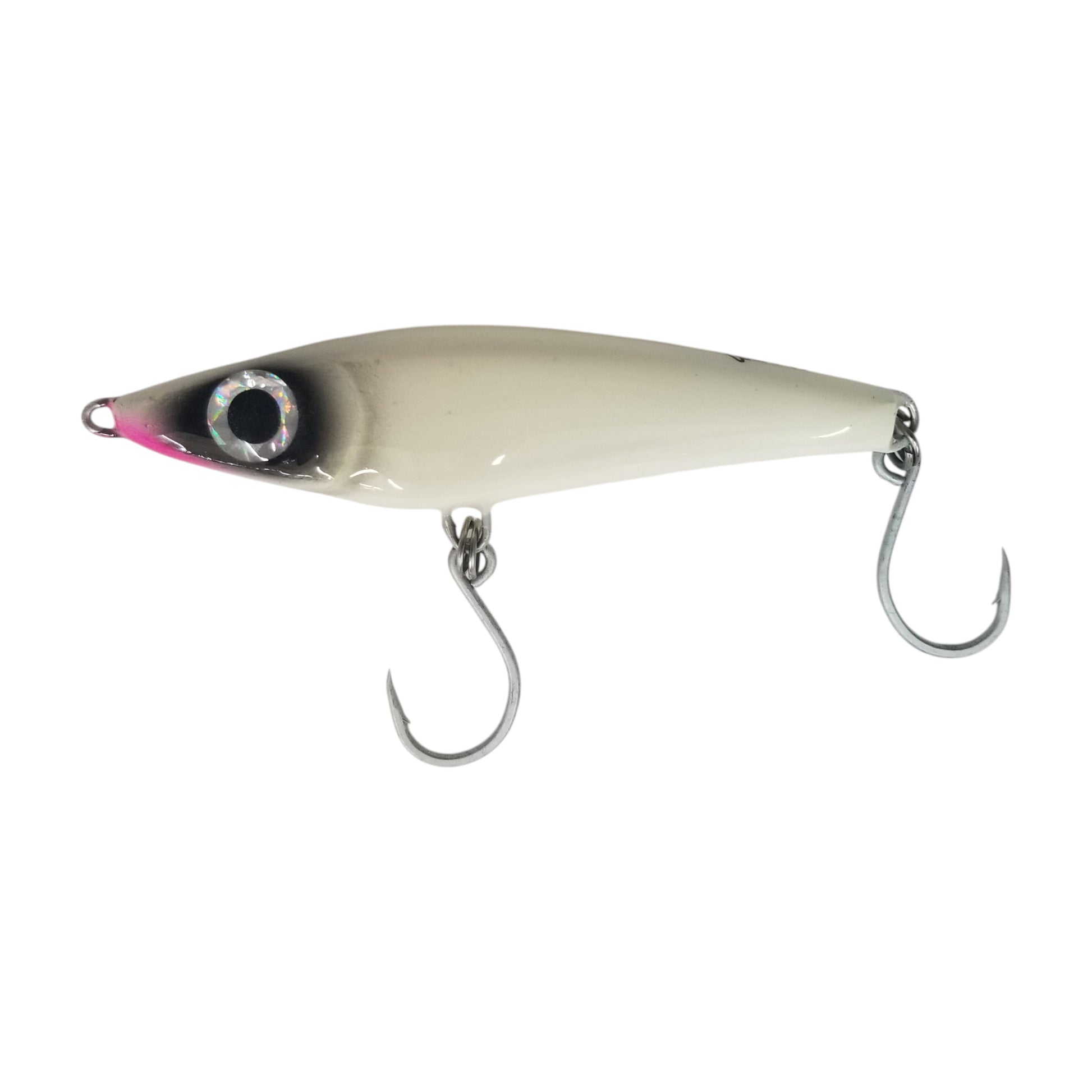 The Alan's Custom Lures 1.8 oz. Mini Dart Glider is a glide bait that features a tight side to side action on a slow to medium retrieve and can be burned back to get Albies' attention. A smaller version of the Dart, this glider mimics smaller juvenile baits, making it perfect for Stripers, blues, and Albies as they target small baitfish.