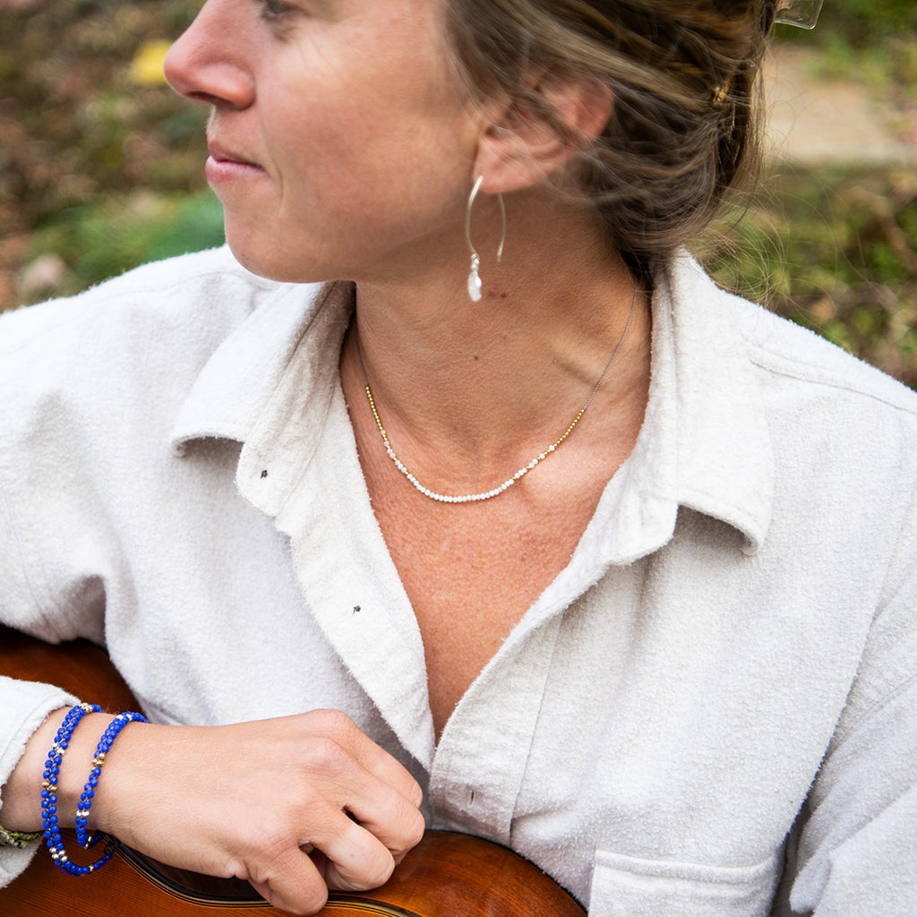 It isn't a mirage on the horizon - it's your new favorite necklace! The Mirage Necklace is an elegant piece inspired by our classic Journey Necklace, but with the focus on everyone's favorite part - the gemstones. These little faceted gems blend effortlessly into tiny gold plated beads giving it it's signature "mirage" effect. This beauty can be worn on a big night out, but is subtle enough for daily outfits. (And trust us, it's not just an illusion!)